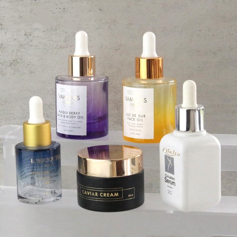 Materiale in vetro ambrato: Il materiale in vetro ambrato fornisce protezione UV, preservando la qualità e la potenza dei prodotti cosmetici sensibili alla luce.