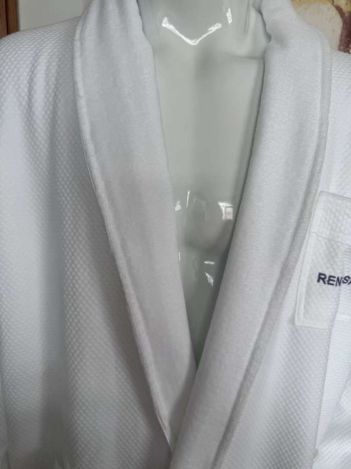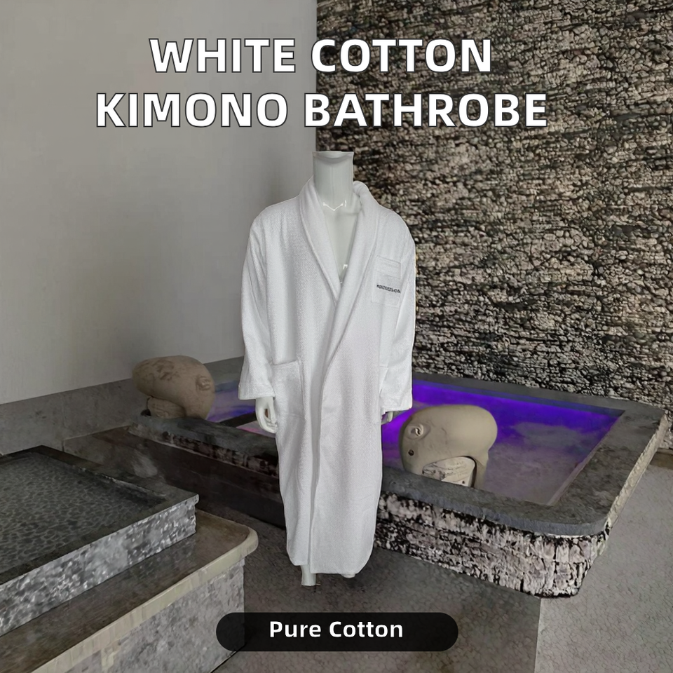 Accappatoio Elegante in Cotone 100% a Doppio Strato con Griglia a Gemme e Scialle in Velluto, Asciugatura Rapida, Traspirante, Unisex, per Spa