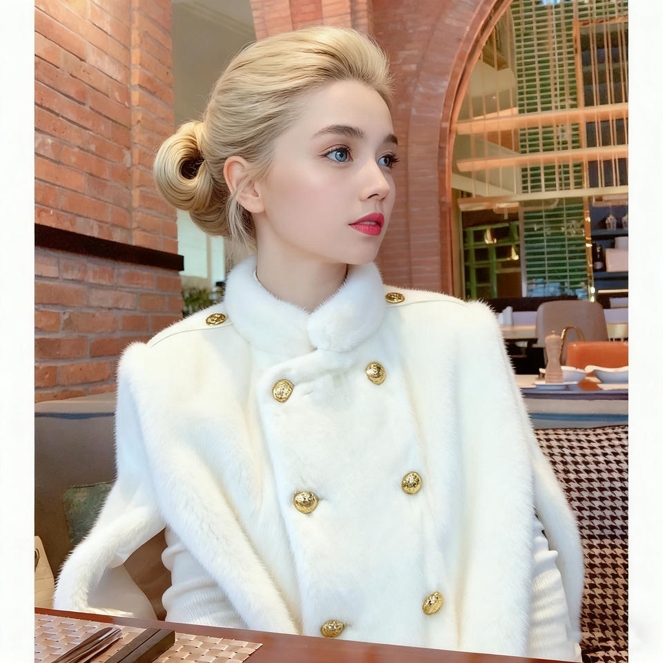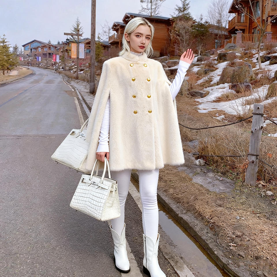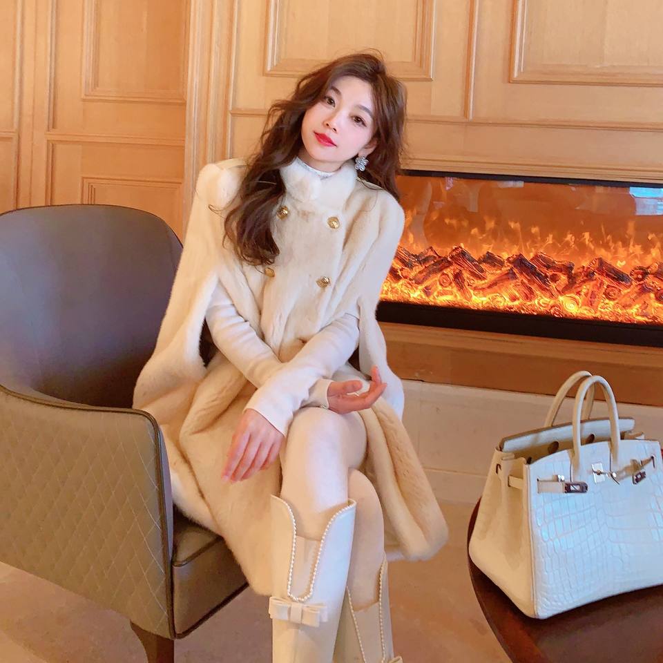 Manufactured Luxury Luxurious Mink off Shoulder Real Fur Cape Elegant Soft Texture Fur Coat Natural Mink Fur