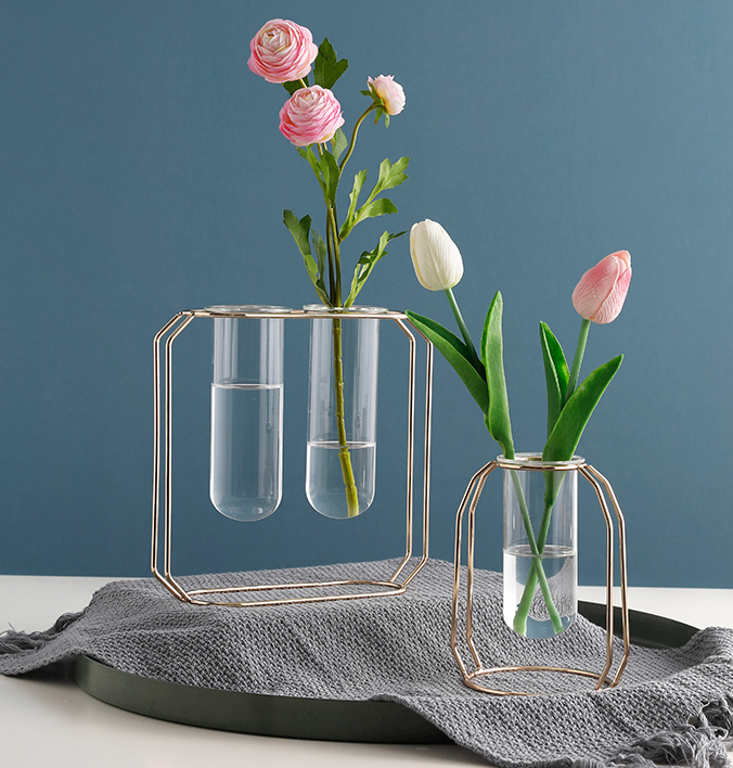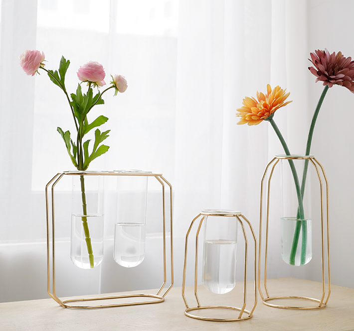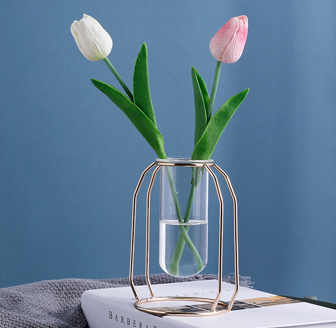 Vaso in Vetro Trasparente Economico per Idroponica, Decorazione Casa e Matrimoni, con Supporto Oro Rosa