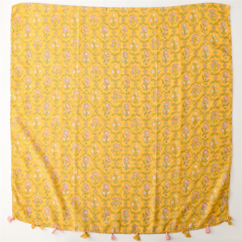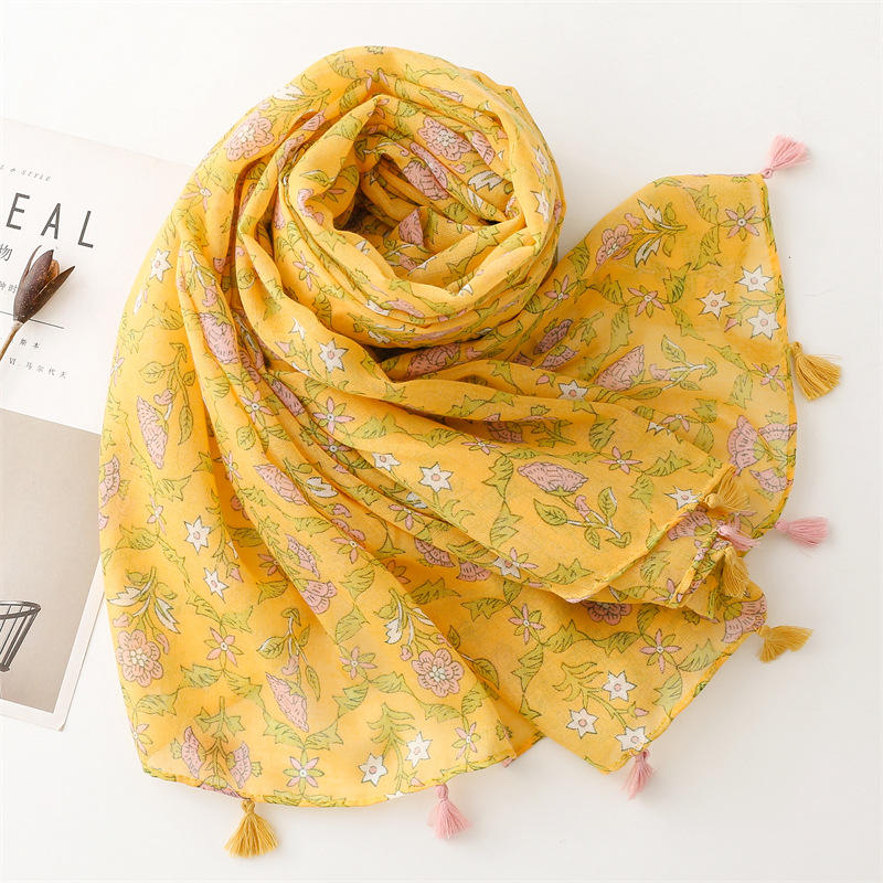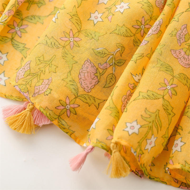 Produttore personalizzato giallo brillante stampato Vintage grandi sciarpe Boho stampa floreale cotone Voile Hijabs sciarpa scialli donna