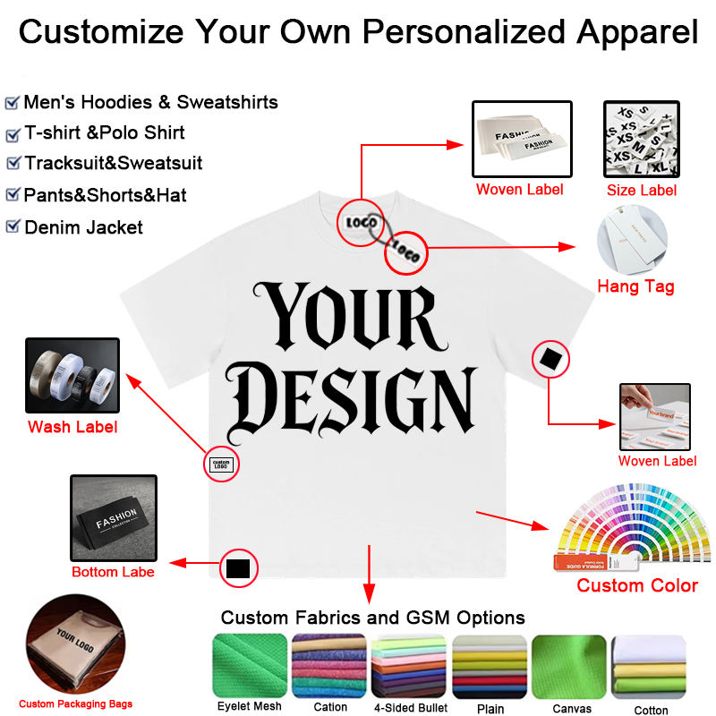 T-shirt girocollo da uomo taglie forti in cotone 100% pesante, personalizzabile con logo DTG, stile streetwear, per stampa puff
