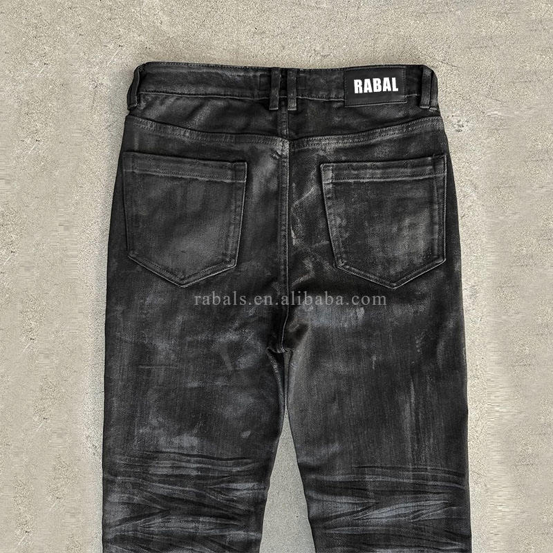 Jeans Denim da Uomo Neri Personalizzati dal Produttore, a Vita Bassa, Skinny, Slim Fit, Bootcut, a Zampa d'Elefante, Effetto Distressed, Vintage, con Finitura Cerata