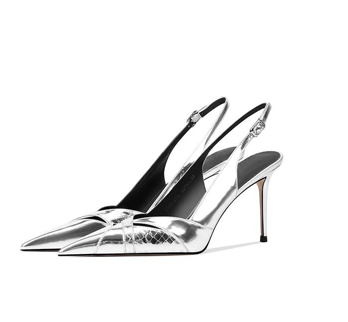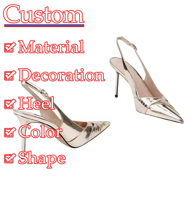 Nuovo arrivo personalizzato produttore di sandali a punta in oro rosa di alta qualità con cinturino dritto tacchi cavi scarpe da donna