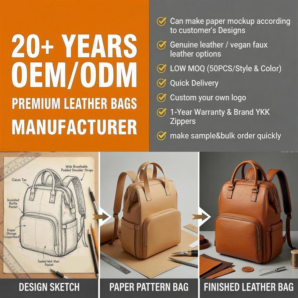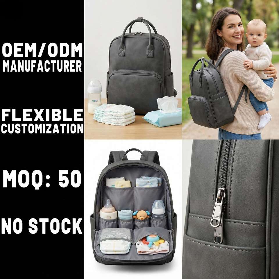 Manufacturer Custom Premium PU Leather Mommy Backpack Large Capacity Waterproof Nappy Bag for Pregnant Moms