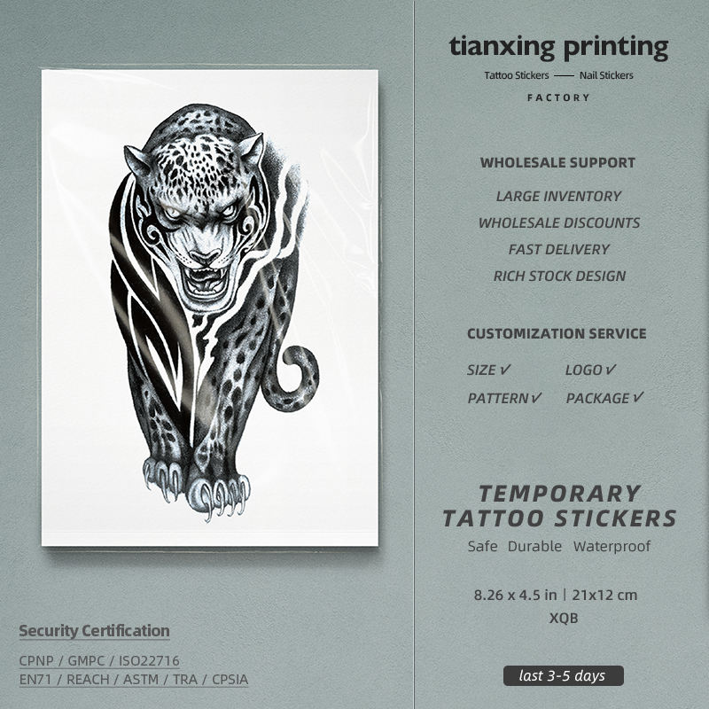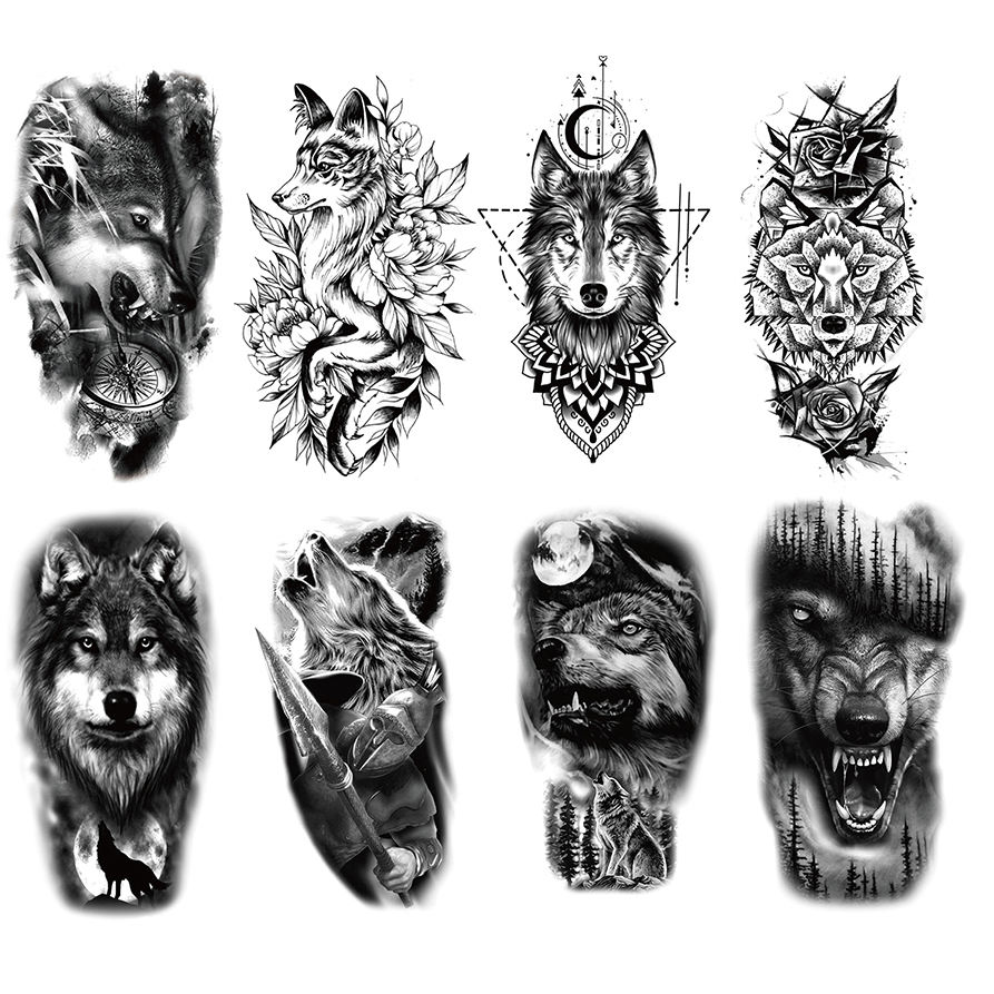 Tatuaggio Temporaneo Personalizzato dal Produttore, Adesivo Impermeabile, Tatuaggio Finto da Corpo con Motivo Lupo per Uomini