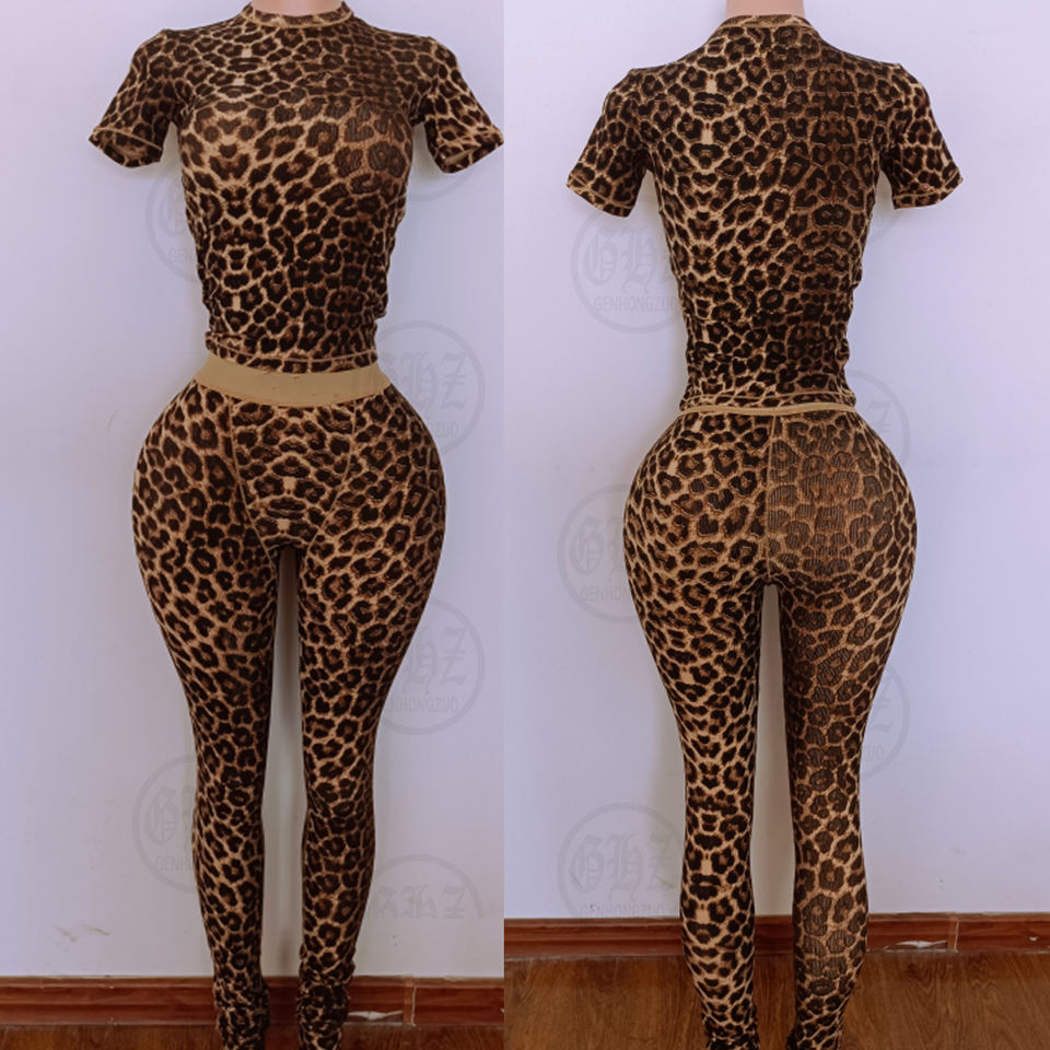 Manufacturer Custom Y2K Women's Summer 2-Piece Set Leopard Print Colorblock Short Sleeve Fold-Waist Shorts Loungewear Clothing