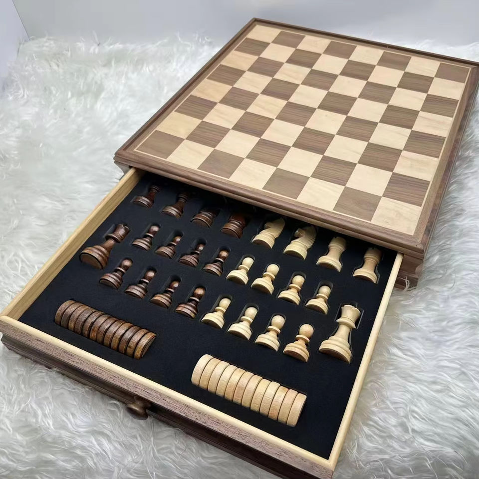 Manufacturer Direct Sales of High-quality Walnut Single Draw 2-in-1 Eco-friendly Luxury Chess Game 15inch Customizable Packaging