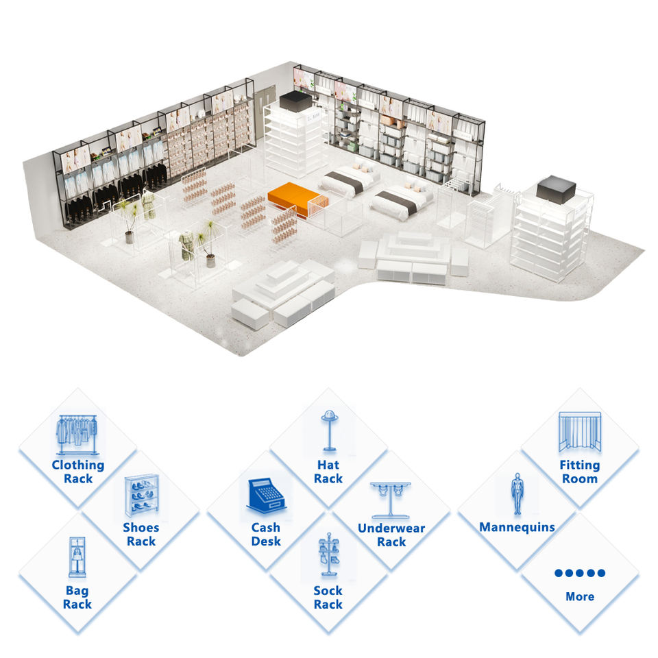 Manufacturer Elegant Women Store Fixtures Boutique Clothes Display Rack New Idea Metal Garment Shop Interior Design