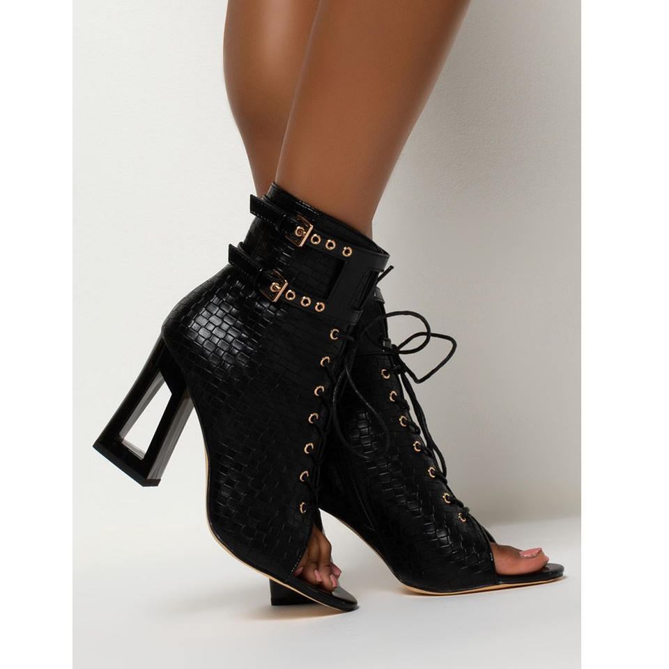 Manufacturer Lace up Women's High Heel Ankle Boots Carven Block Heel Ankle Boots With Open Toe