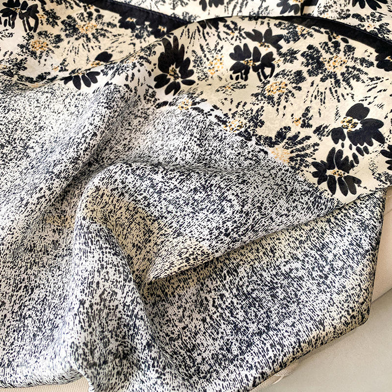 Manufacturer New Trend Ladies Black Floral 70cm Silk square Scarves Women Plain Flower Print Handkerchief Hair Scarf Bandanas