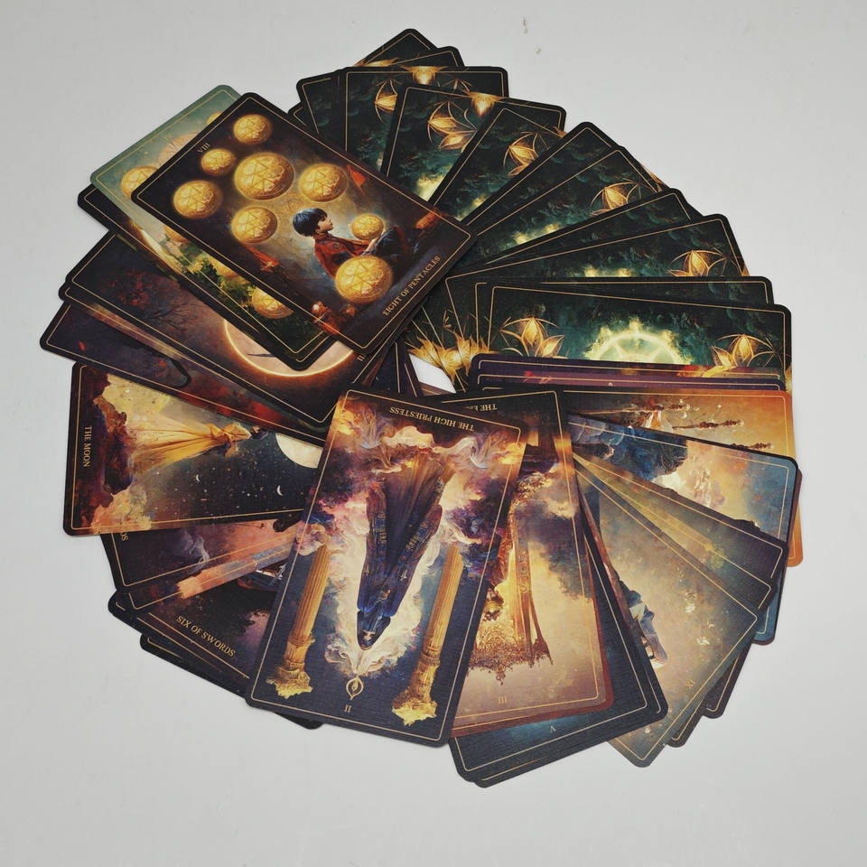 Produttore di stampa di mazzi di carte dei tarocchi bordo dorato personalizzato arte carte da gioco oro stampa a caldo misteri gioco di carte della fortuna