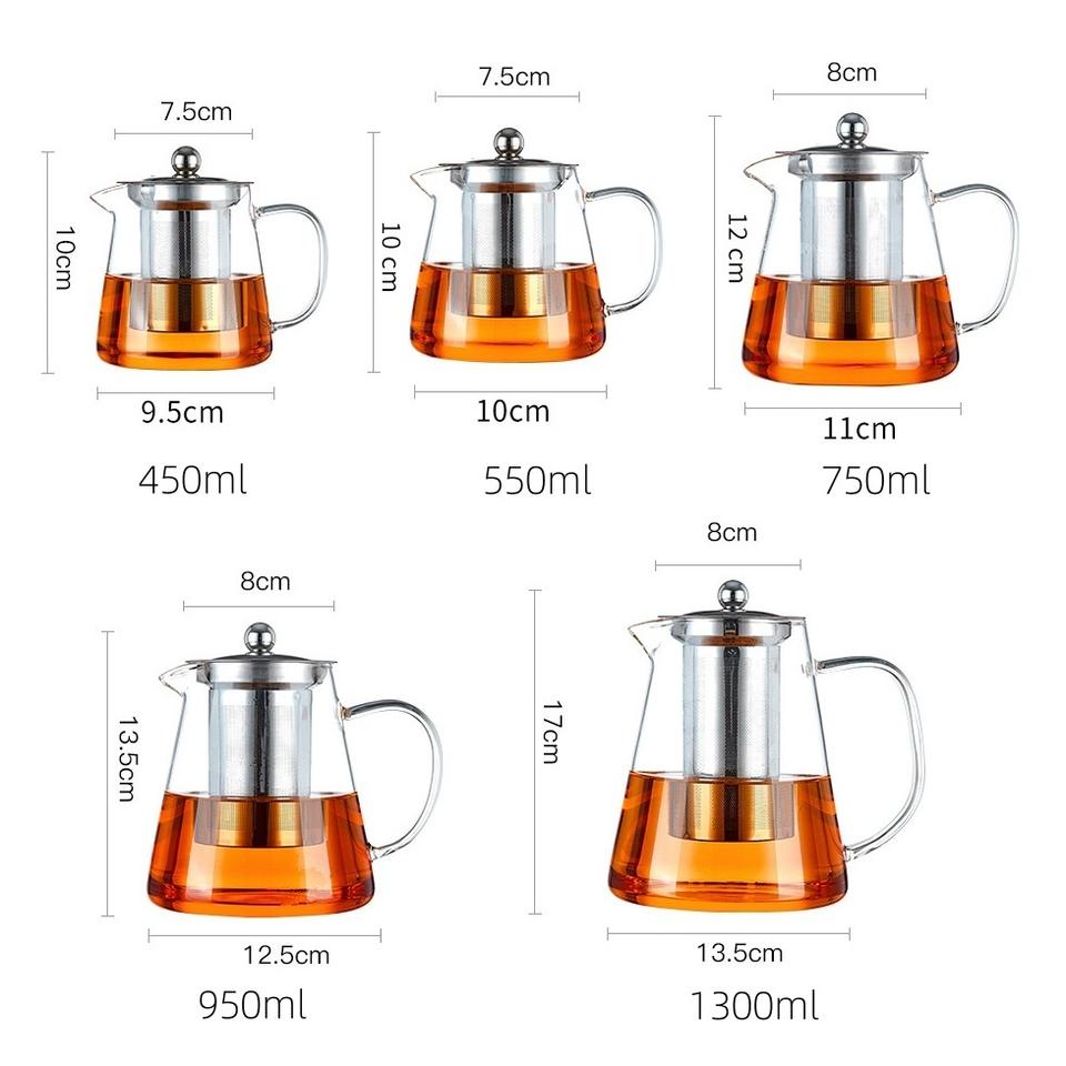 Produttore promozionale acqua teiera di vetro prezzo competitivo in acciaio inox teiera con infusore borosilicato teiera di vetro