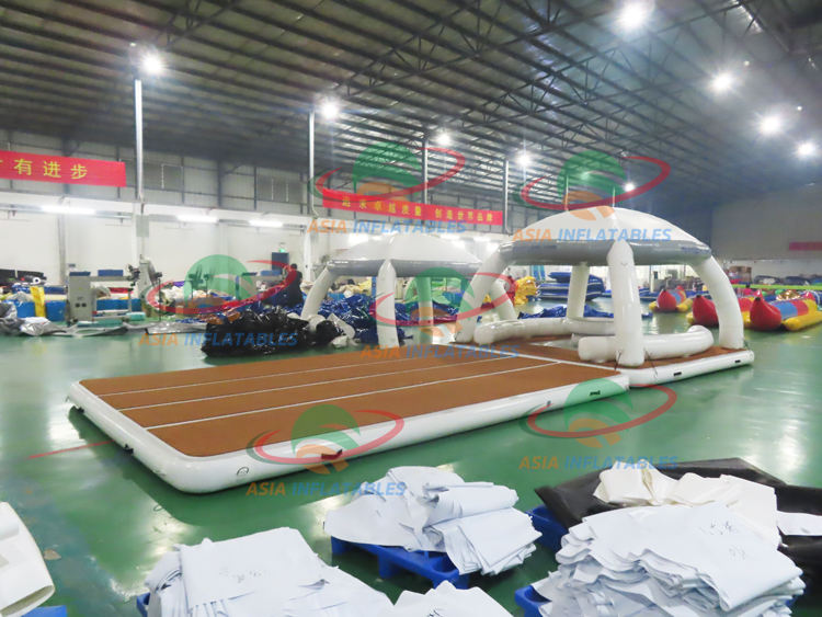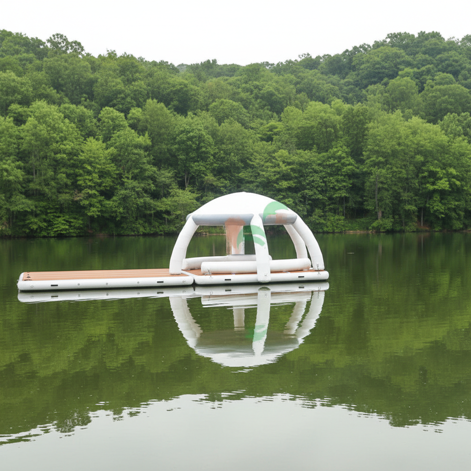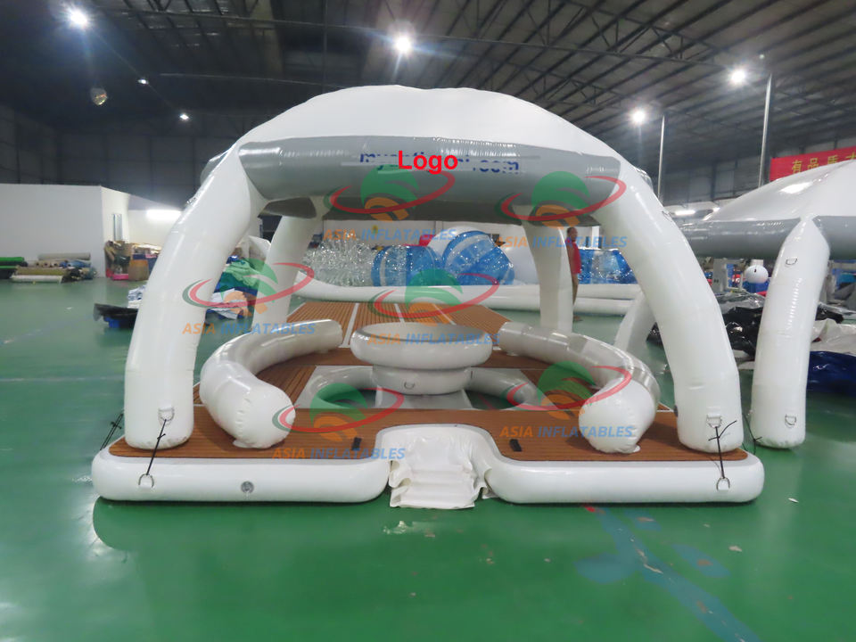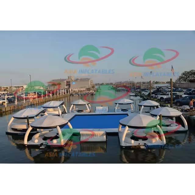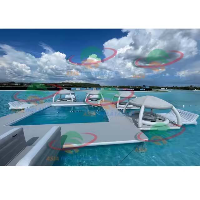 Piattaforma Galleggiante Gonfiabile Antiscivolo per Piscina, Bar Galleggiante, Molo in Legno, Isola Galleggiante