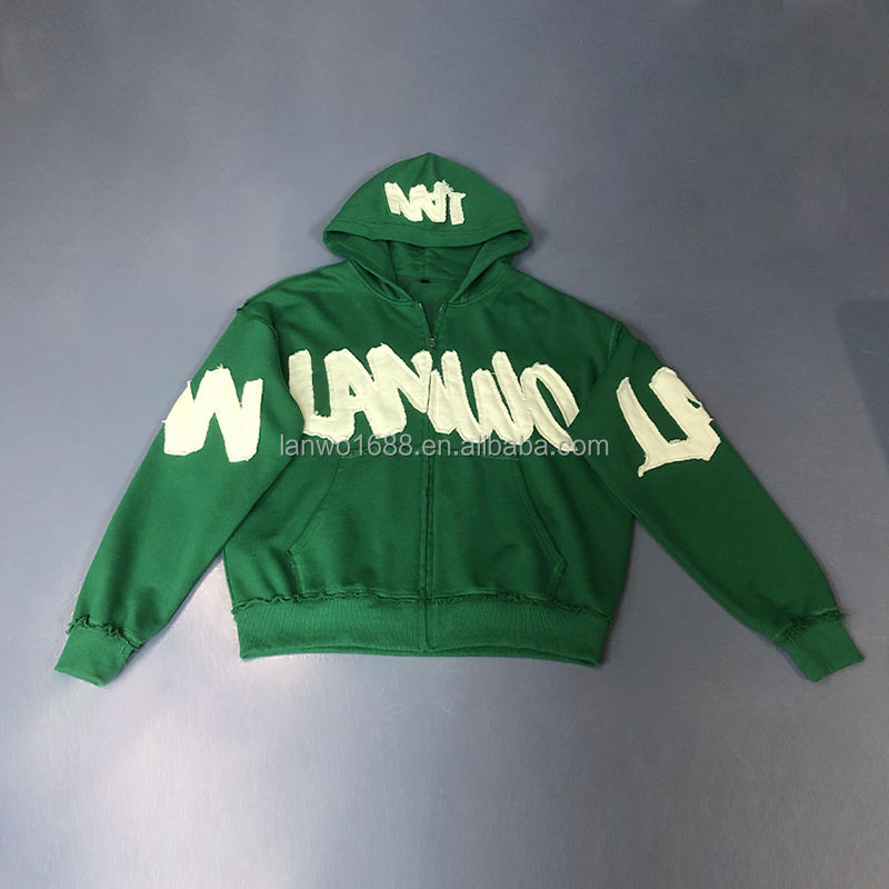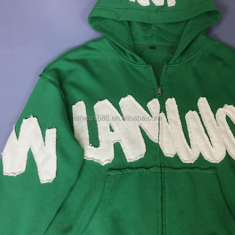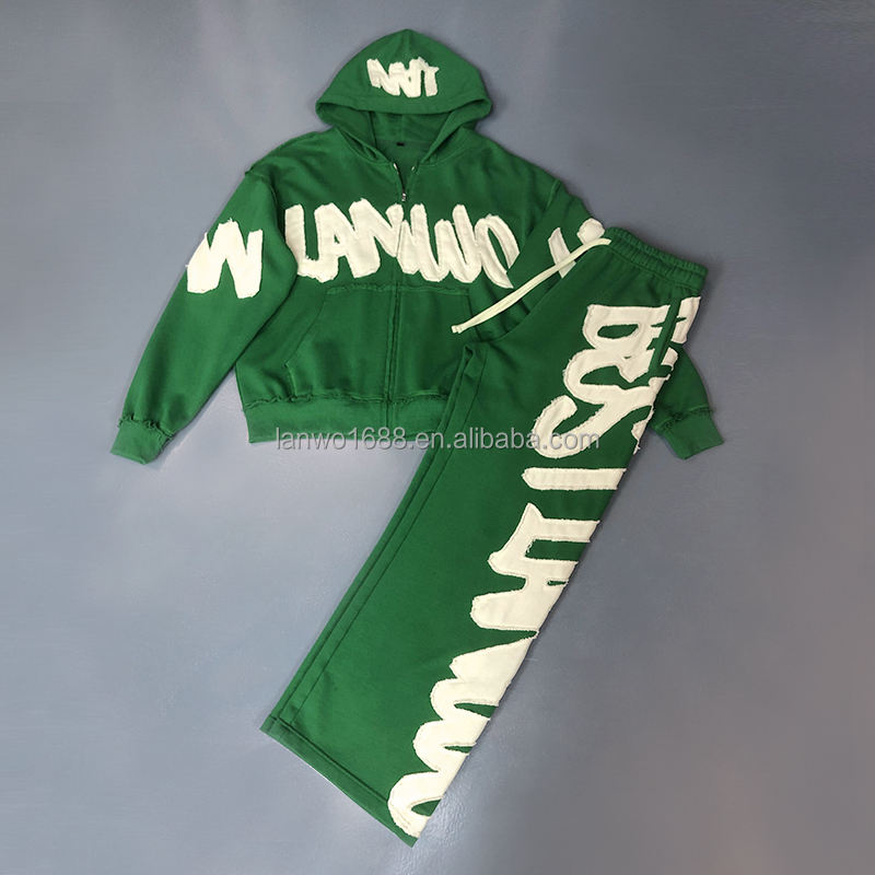 Manufacturer's Custom 100% Cotton Zip-Up Hoodie Acid Wash Embroidered Patch Sweatpants Set Elegant XS Size Hooded Tracksuit