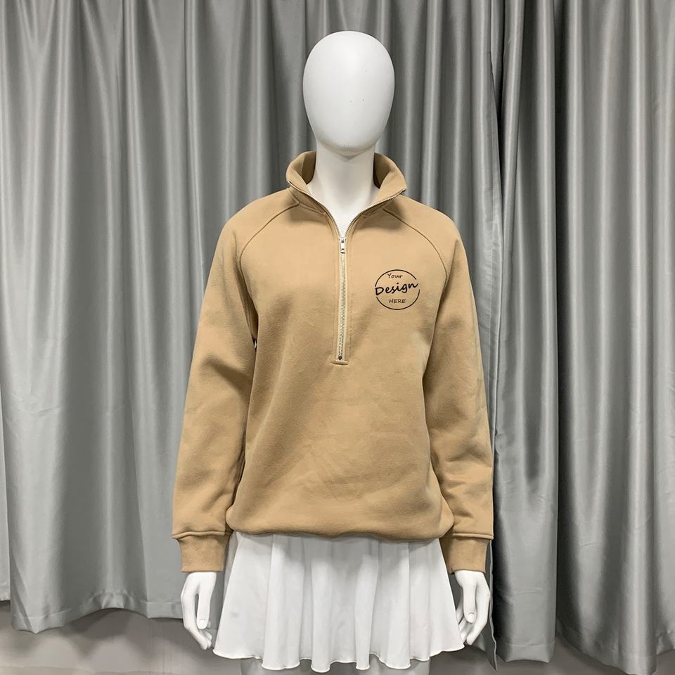 Manufacturer's Custom Women's Trendy 320 Gsm Loose Fit Cross-border Screen Printing Brown 1/4 Zipper Raglan Sweatshirt