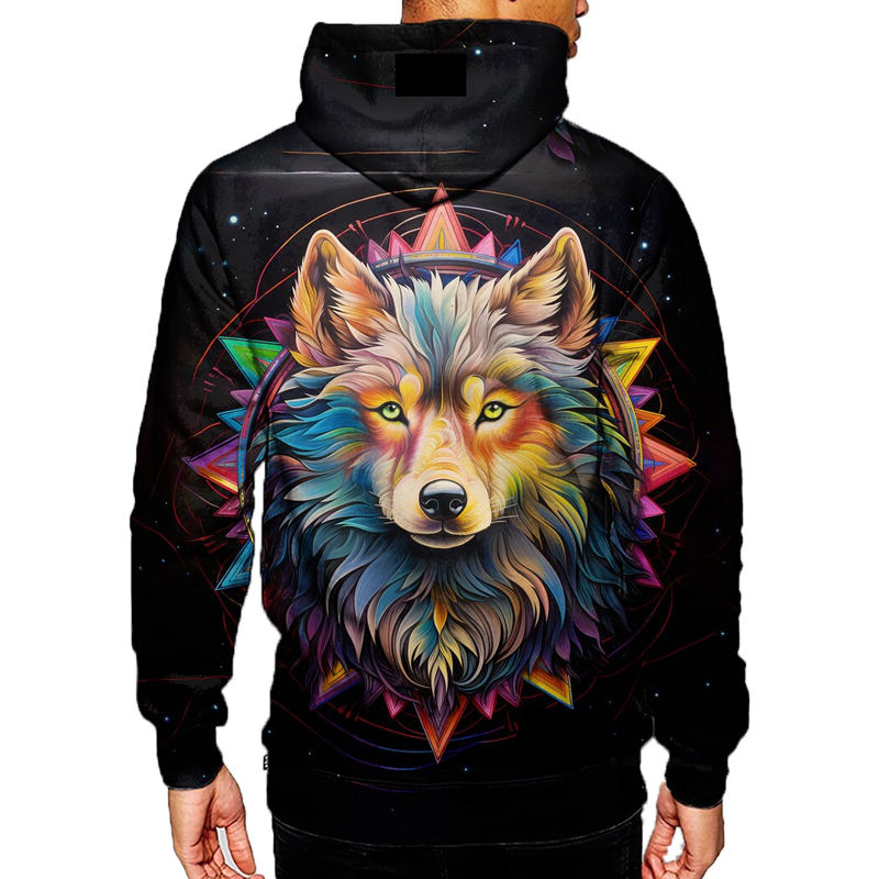Felpa nera con cappuccio stampata 3D di alta qualità del produttore con Design a testa di lupo