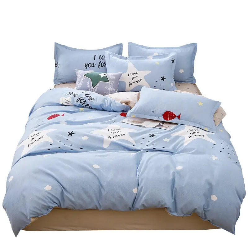 Set di biancheria da letto in cotone lavato spazzolato in tre pezzi del produttore lenzuola a letto singolo dormitorio con federa e copriletto