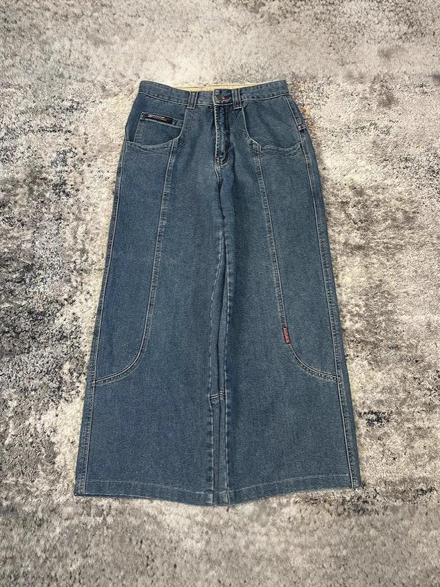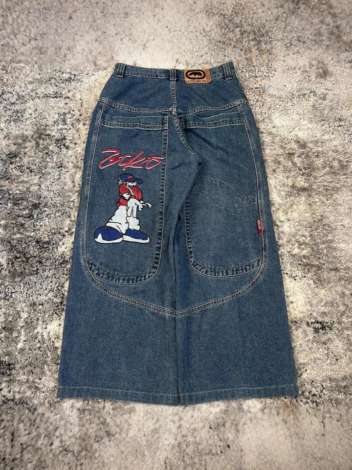 Jeans Personalizzati per Uomo con Ricami e Stampe, Vestibilità Ampia, Denim Blu, Stile Street, Pantaloni Lavati