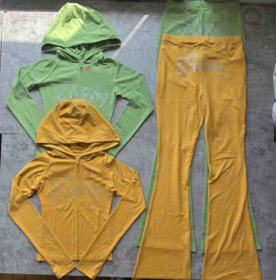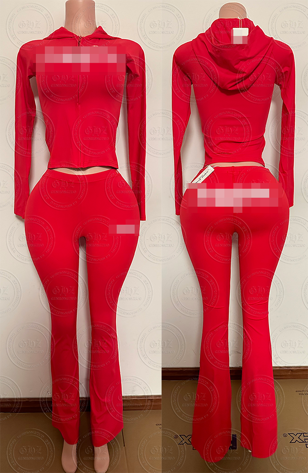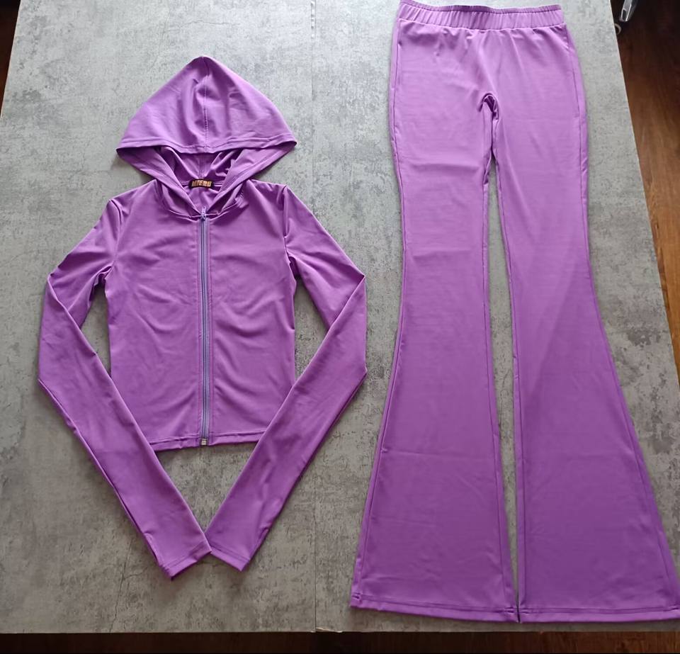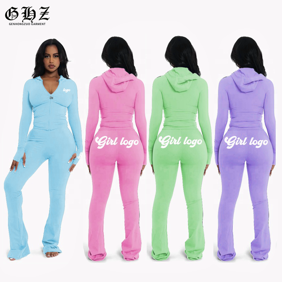 Tute Sportive Personalizzate da Produttori Set da Allenamento da Donna Giacca con Cappuccio e Zip Pantaloni a Zampa Leggings Completo 2 Pezzi Tute da Ginnastica per Donna