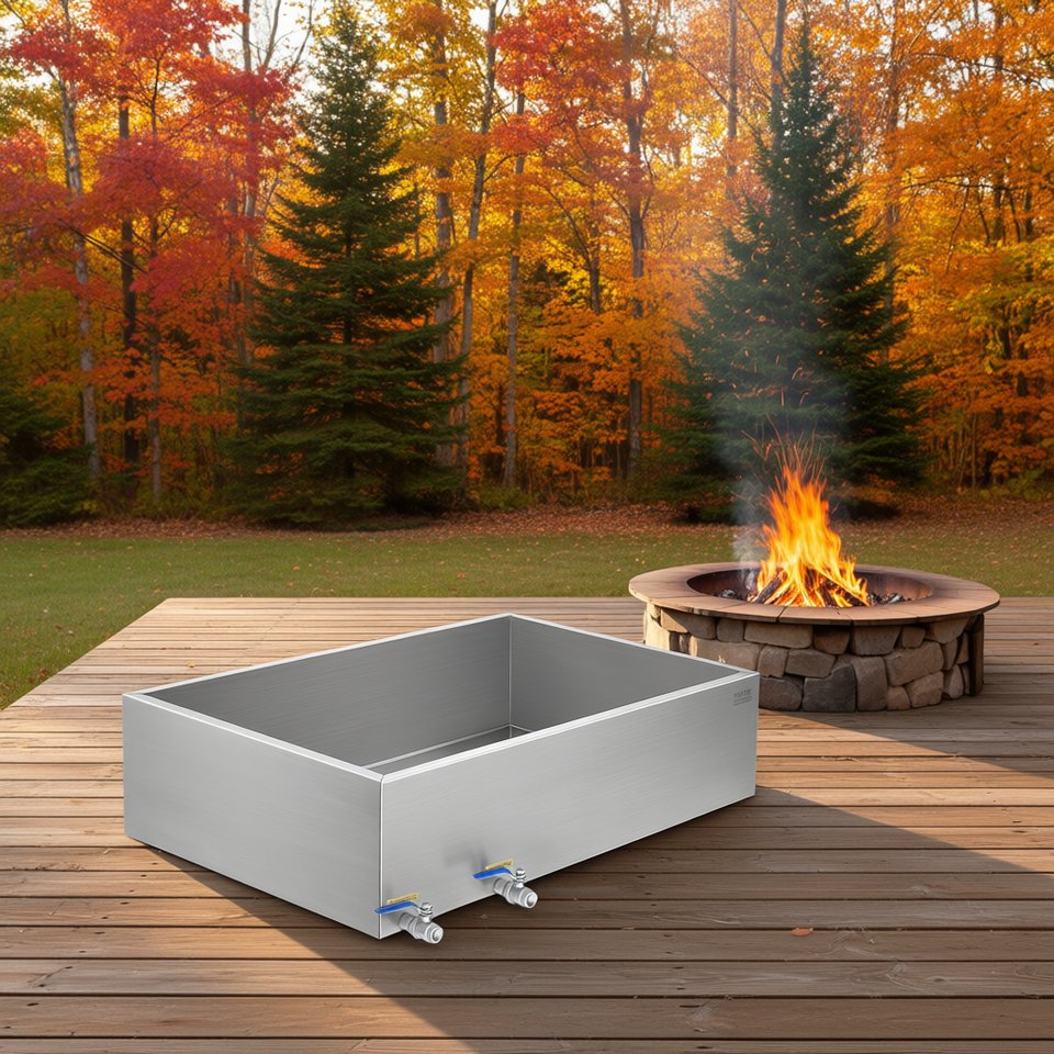 Vaschetta Evaporatrice per Sciroppo d'Acero in Acciaio Inox 304 Rettangolare con 2 Valvole per Teglie da Arrosto da Esterno