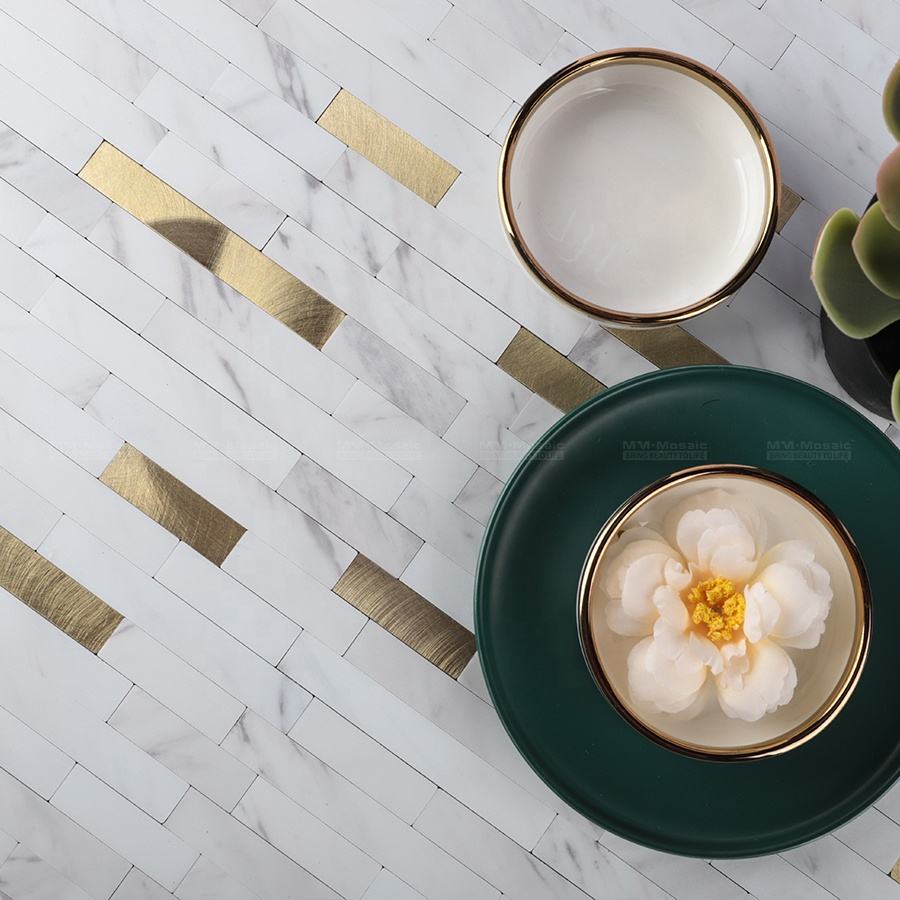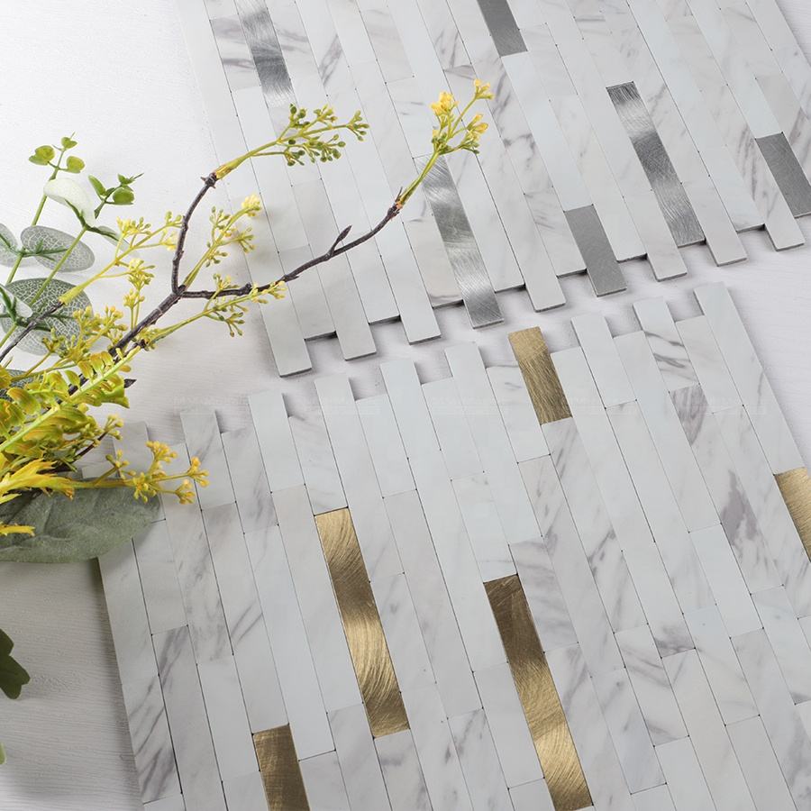Modello in marmo oro argento autoadesivo mosaico in Pvc buccia e Stick piastrella per cucina Backsplash parete soggiorno progetto doccia