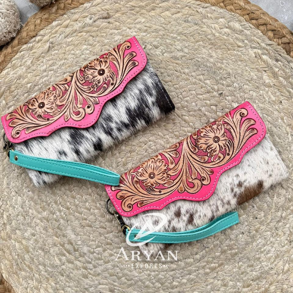 Product name:Hand Tooled Cowhide Leather Wristlet Wallet