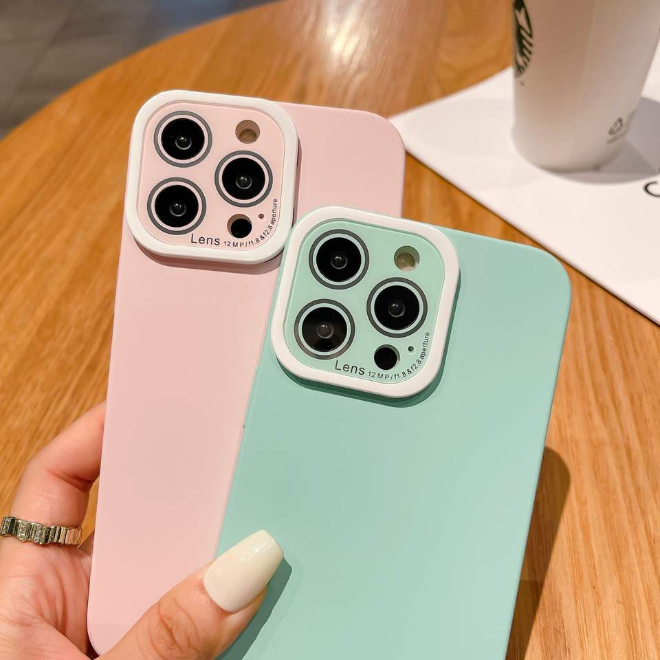 Custodia morbida in silicone opaco color marcoron per iphone 11 12 13 14 15 pro max cover con supporto per obiettivo protezione per fotocamera