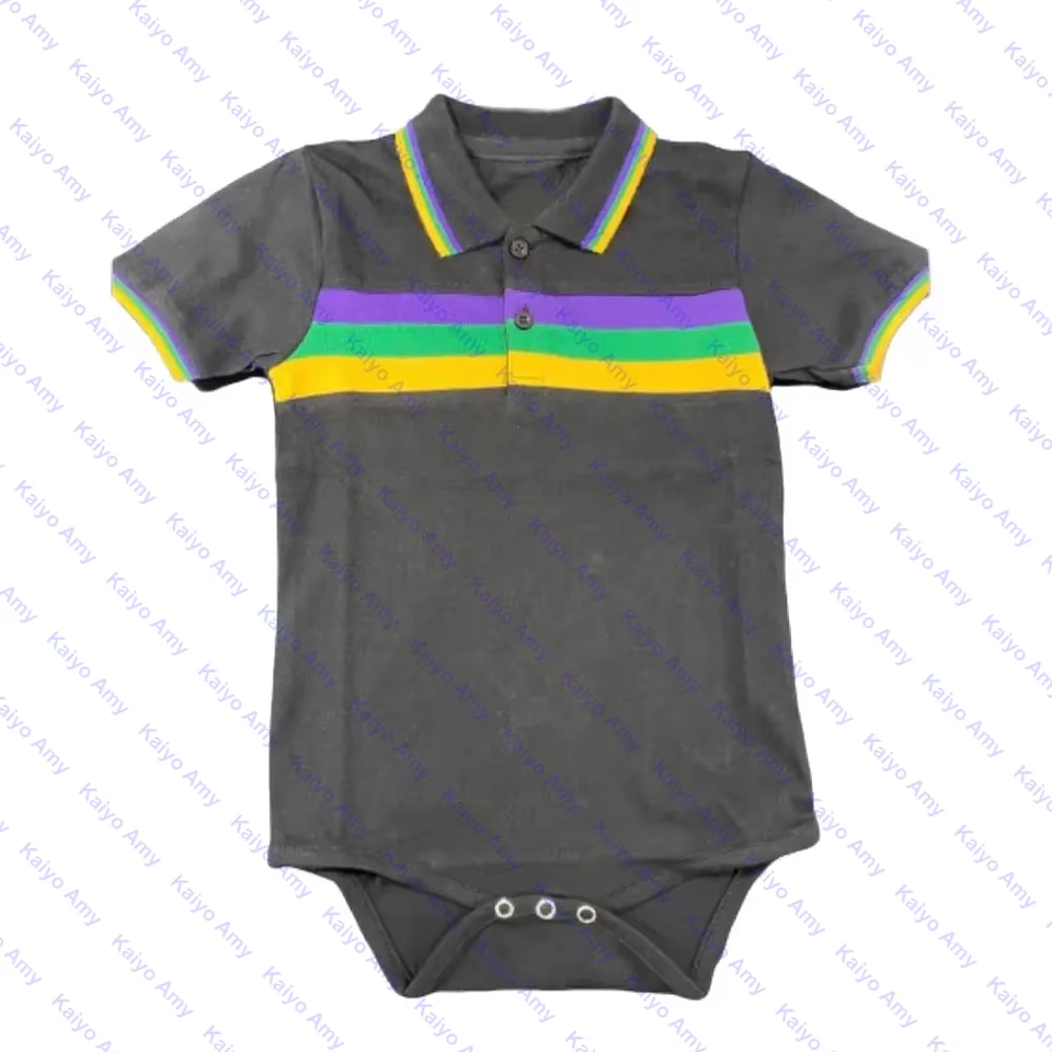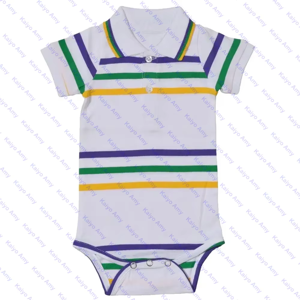 Mardi Gras Clothes Polo Neck Bodysuit for Newborns Purple Green Gold Cotton Stripe Baby Boy Rompers