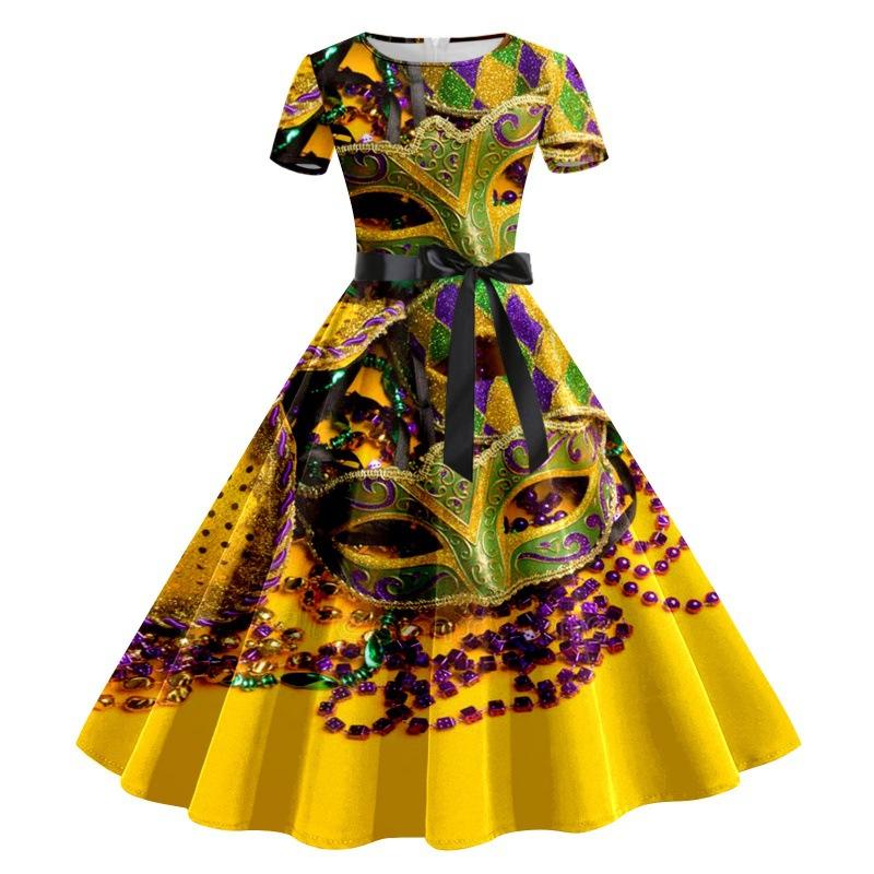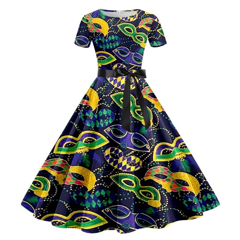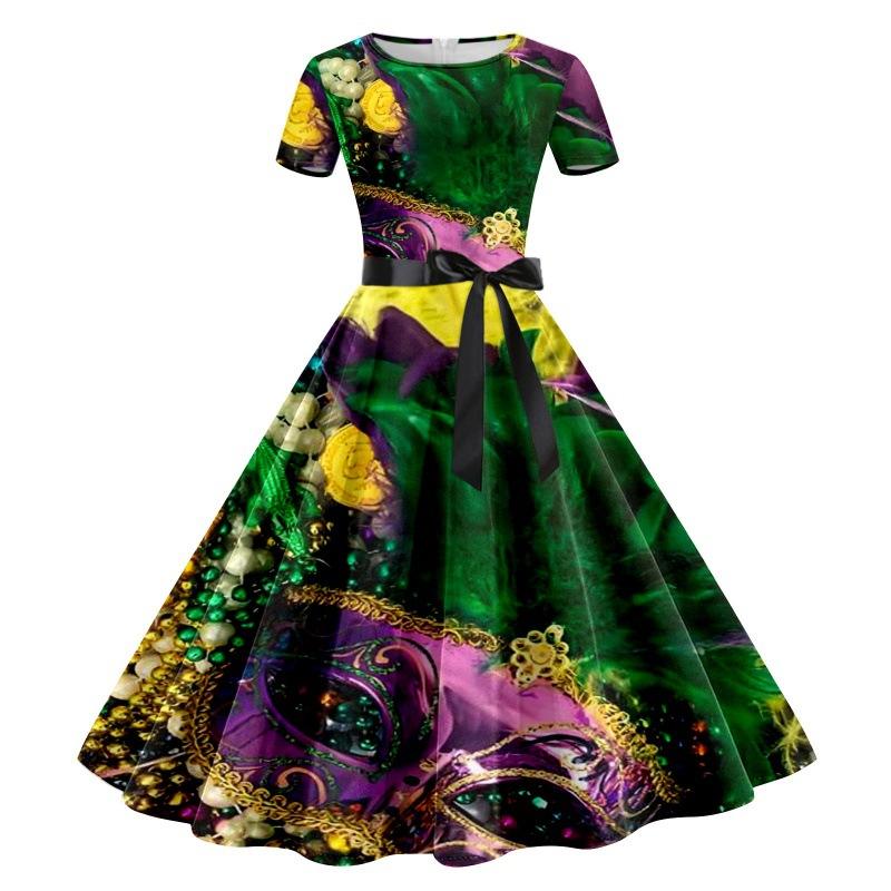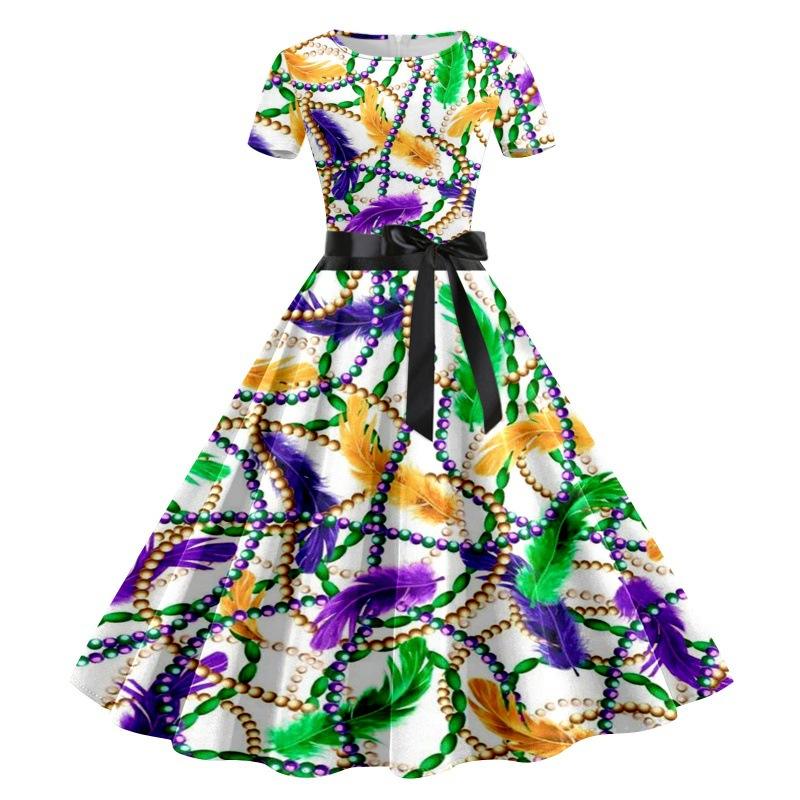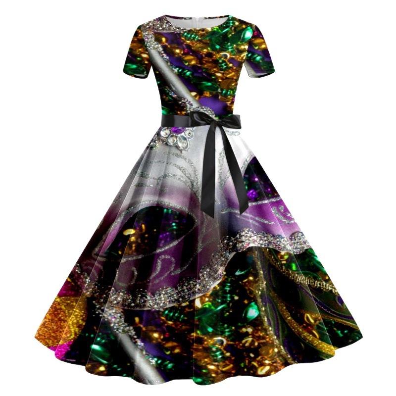 Mardi Gras Dress for Women Women's Dress Short Sleeve Knee-Length Cocktail Party Mardi Gras Evening Dress