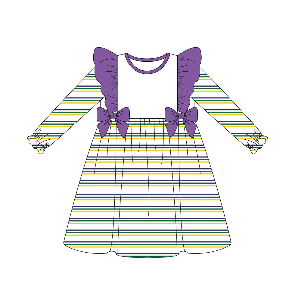 Mardi Gras March Strisce con arco per bambine abiti da bambina con logo personalizzato e nome di cotone vestito da bambina