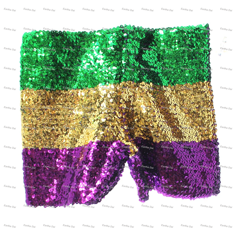 Pantaloncini con Paillettes per Mardi Gras, Shorts Colorati per Adulti, Ragazze e Donne, Pantaloncini Elasticizzati con Paillettes Viola, Verde e Giallo