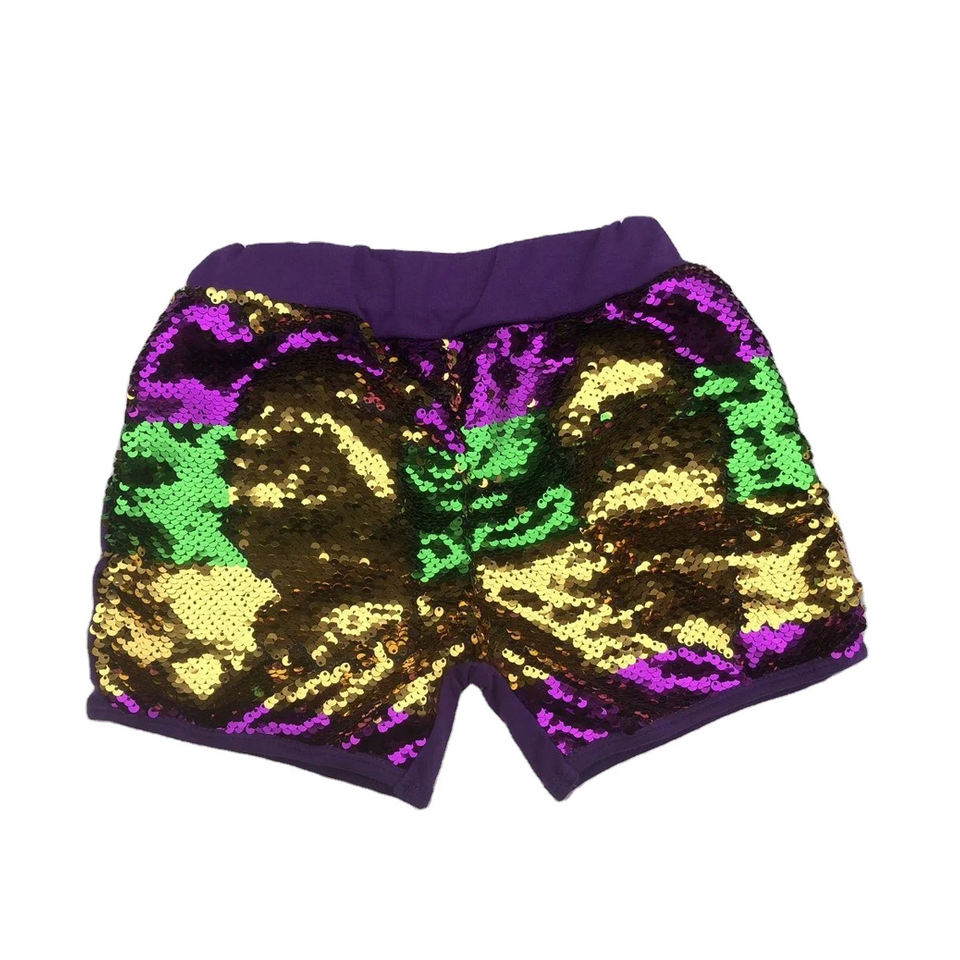 Mardi Gras Sequined Shorts Mommy and Me Purple Gold Green Party Shiny Reversible Girls Glittery Shorts