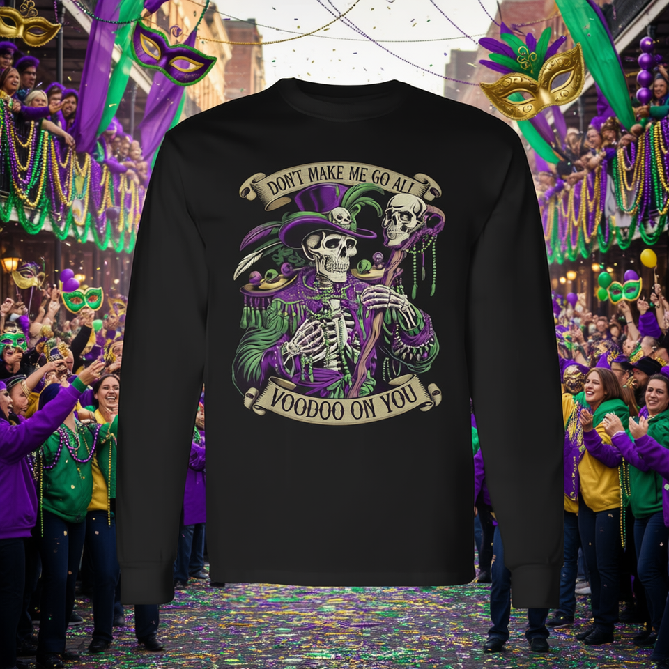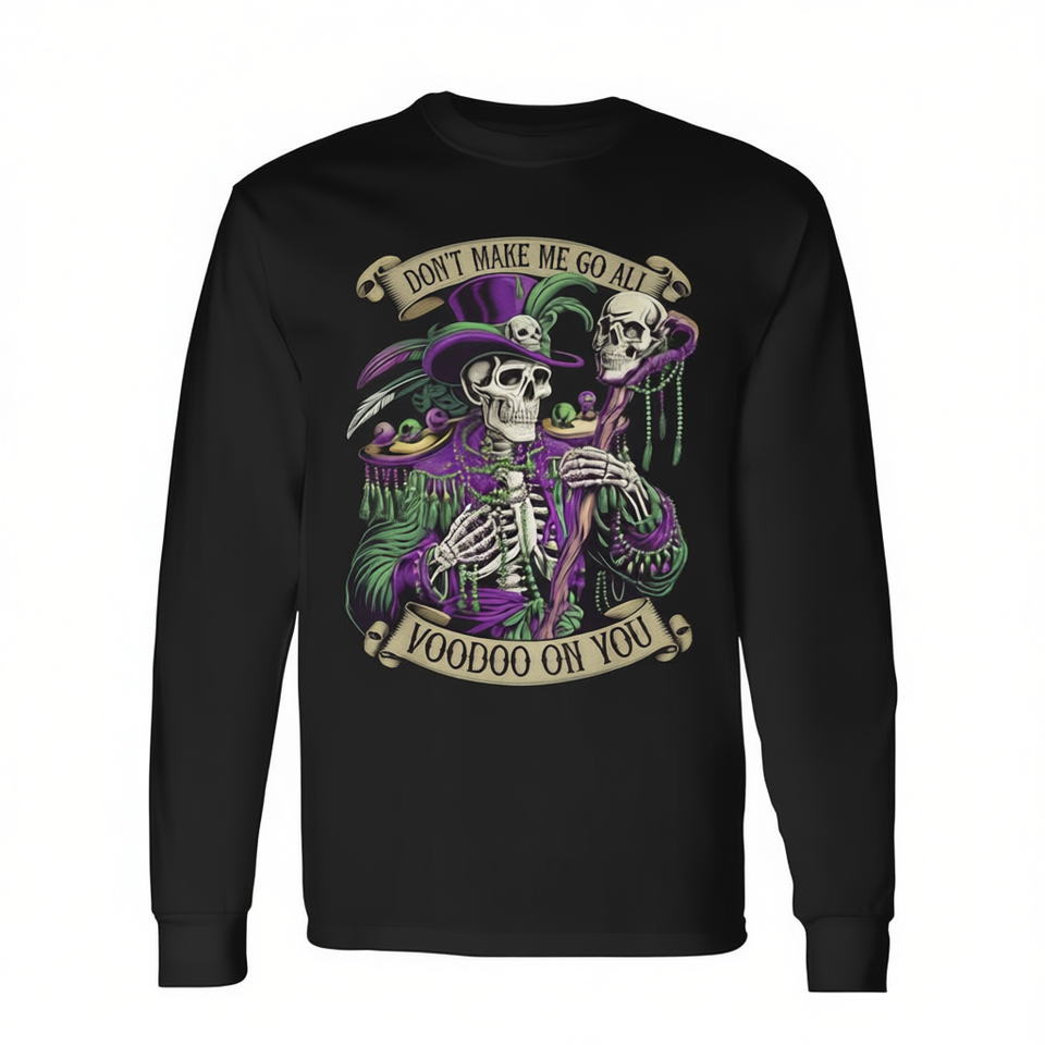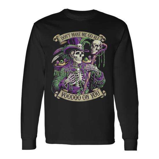 Maglietta a maniche lunghe con stampa scheletro per Mardi Gras - Non farmi impastornare! - Maglietta promozionale