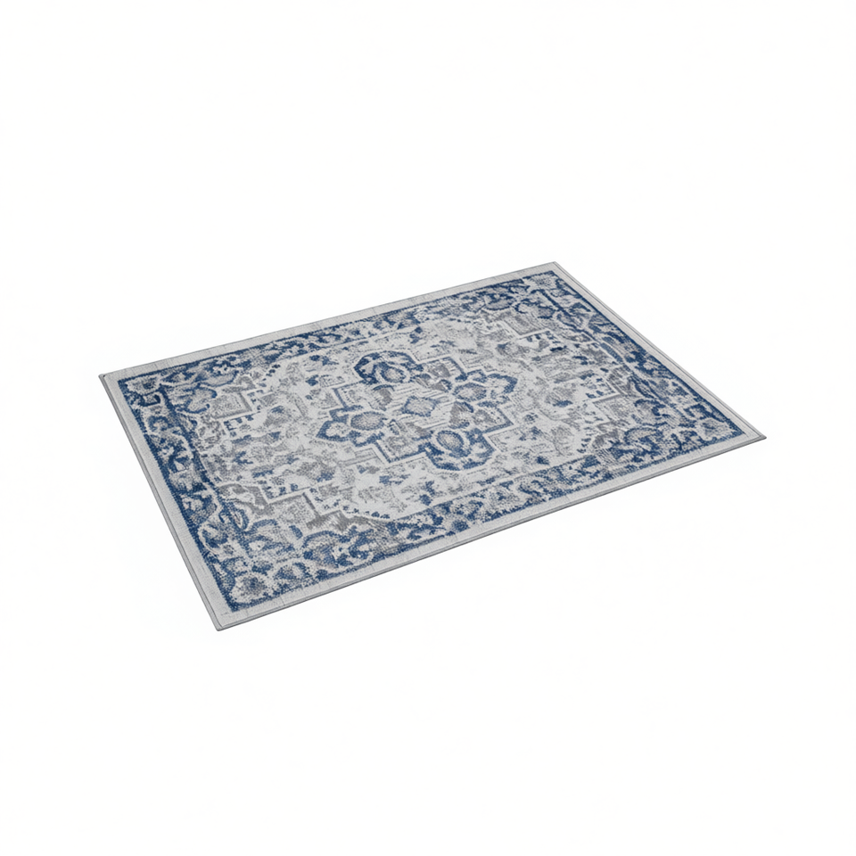 Tappeto Orientale Collezione Marfi 2x3 Blu Grigio Rettangolare, Non Perde Pelo, Realizzato a Macchina in Poliestere per Casa, Ufficio, Camera da Letto, Soggiorno
