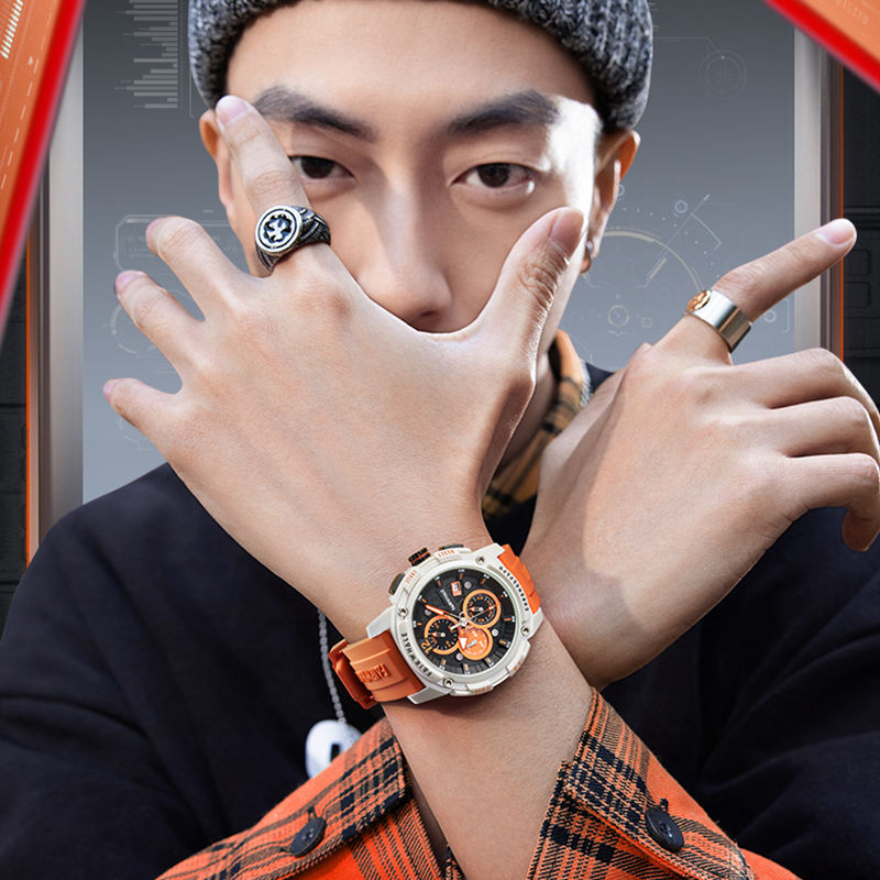 Mark Fairwhale Mens Luxury Sport Chronograph Fashion Watch Shock Resin Case Strap Quartz Watches