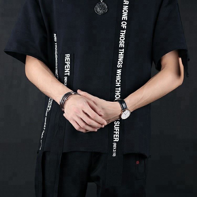 Marlary Retro Mens Marrone con Perline Lungo Bar In Acciaio Inox Maschile Braccialetto Del Cuoio Genuino