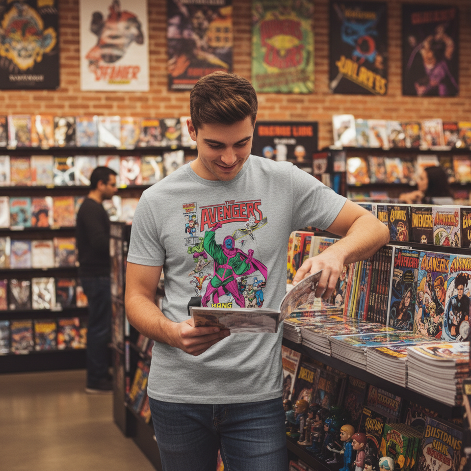 T-Shirt Marvel Comics Avengers con Stampa Serigrafica, Unisex per Adulti, Manica Corta, Collo Tondo, Abbigliamento Promozionale