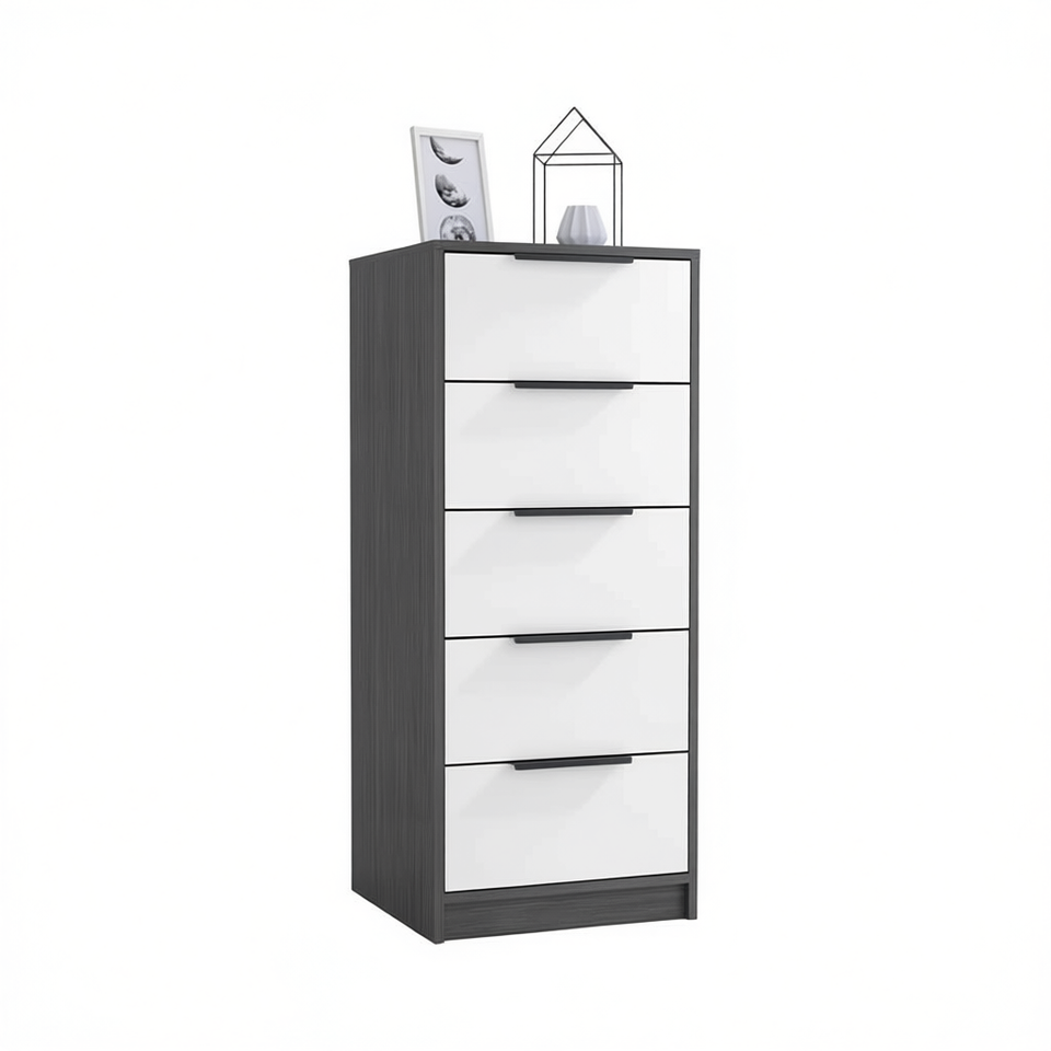 5 Drawer Dresser Smokey Oak White Finish Modern Bedroom Furniture Freestanding Wood MDF Panel Design