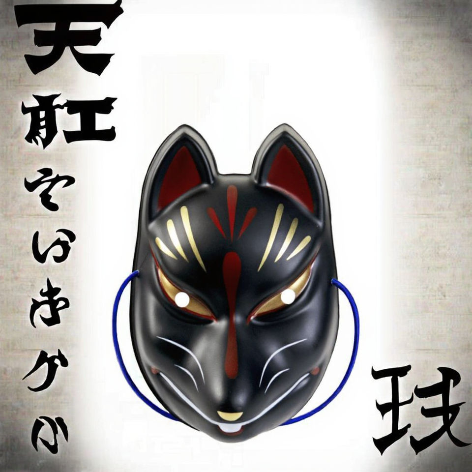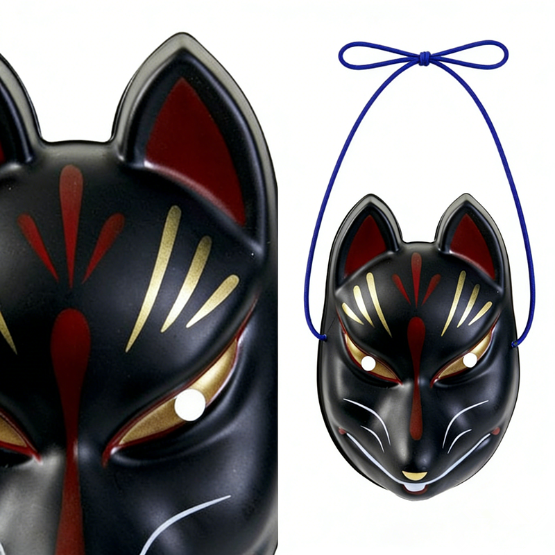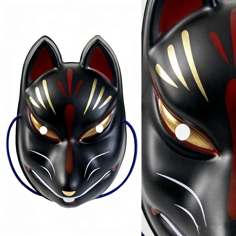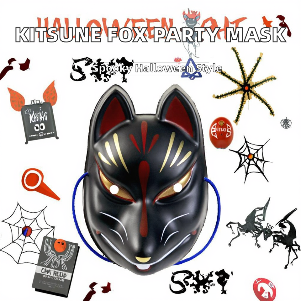 Maschere per Masquerade, Maschera Integrale da Volpe Kitsune per Carnevale, Coperture Facciali per Halloween e Anime Giapponesi, Bianco e Nero