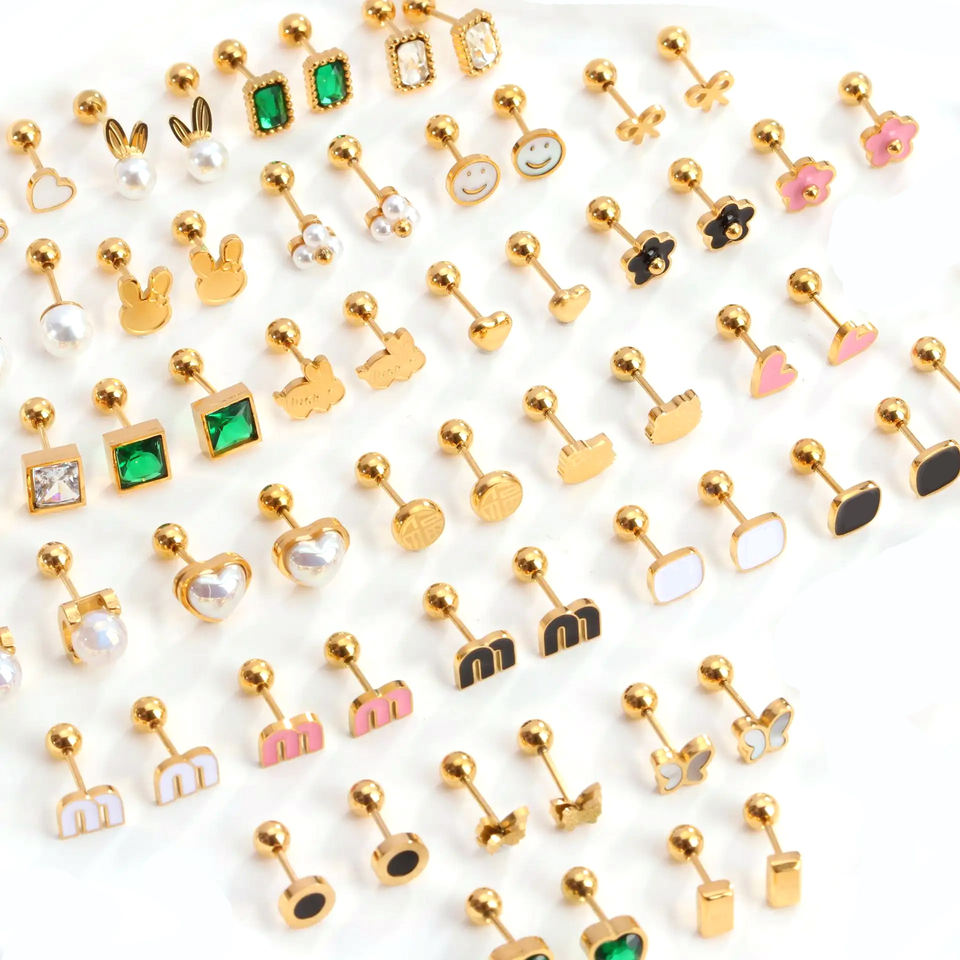 Massive Designs Orecchini a perno in acciaio inossidabile placcato oro PVD 18K - Orecchini piercing a bilanciere con chiusura a vite | Ipoallergenico e Impermeabile