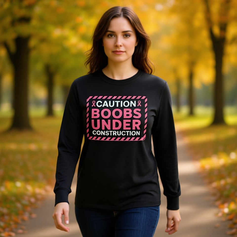 Maglietta a maniche lunghe per mastectomia e cancro al seno, design con nastro rosa per la consapevolezza e il supporto