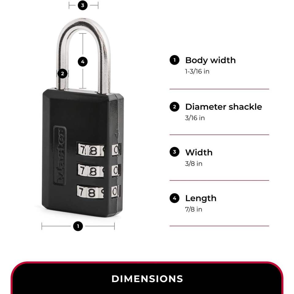 Lucchetto a Combinazione Nero Master Lock Personalizzabile con Codice a 3 Cifre per Bagagli, Armadietti da Palestra e Viaggi