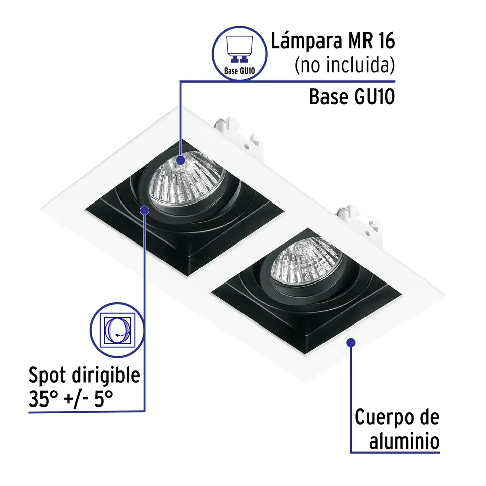 Master con 20 unità di illuminazione ad incasso con 2 faretti direzionali, bianco, VOLTECK