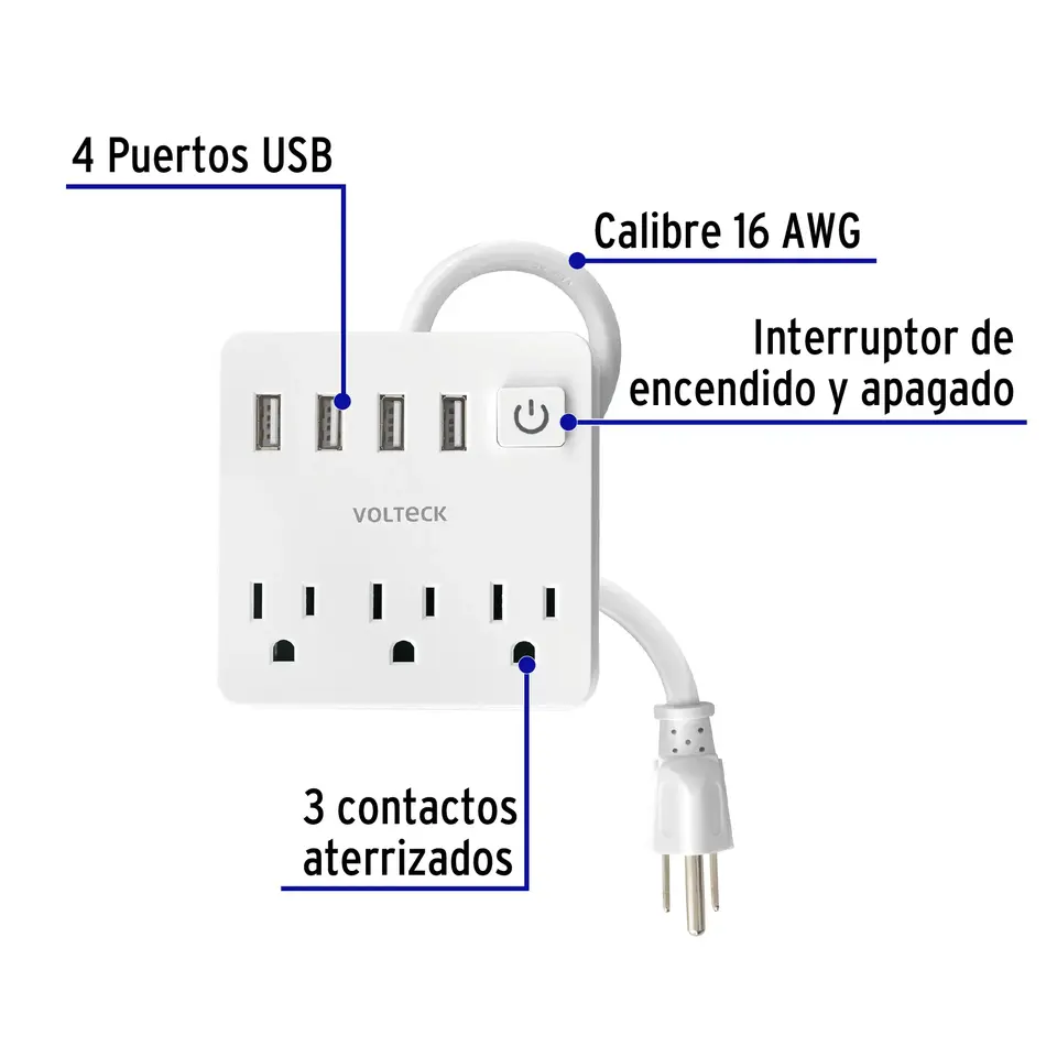Master con 24 unità Multi-contatto 16 AWG domestico 3 ingressi 4 punti USB, bianco