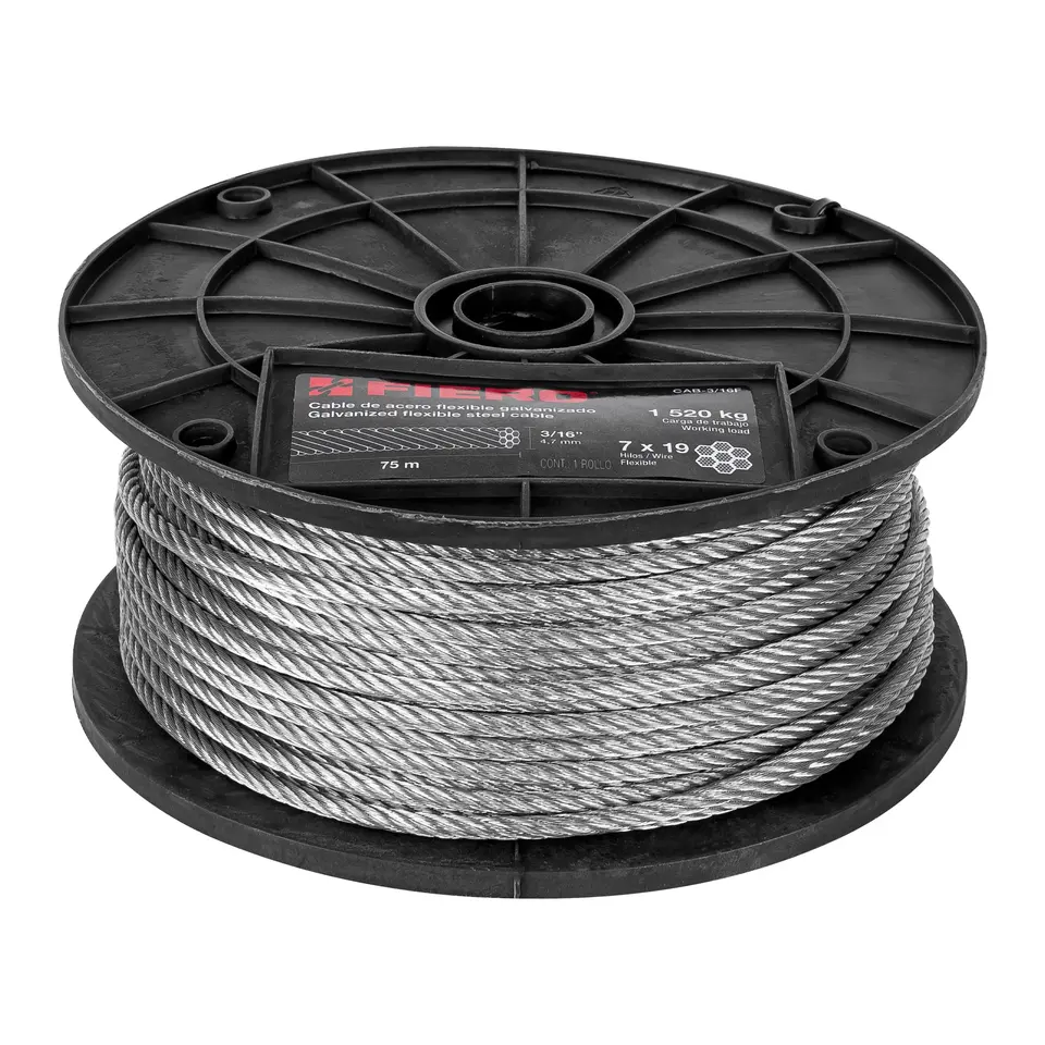 Master with 300 units Meter of flexible cable 3/16' steel 7x19 wires, 75 m