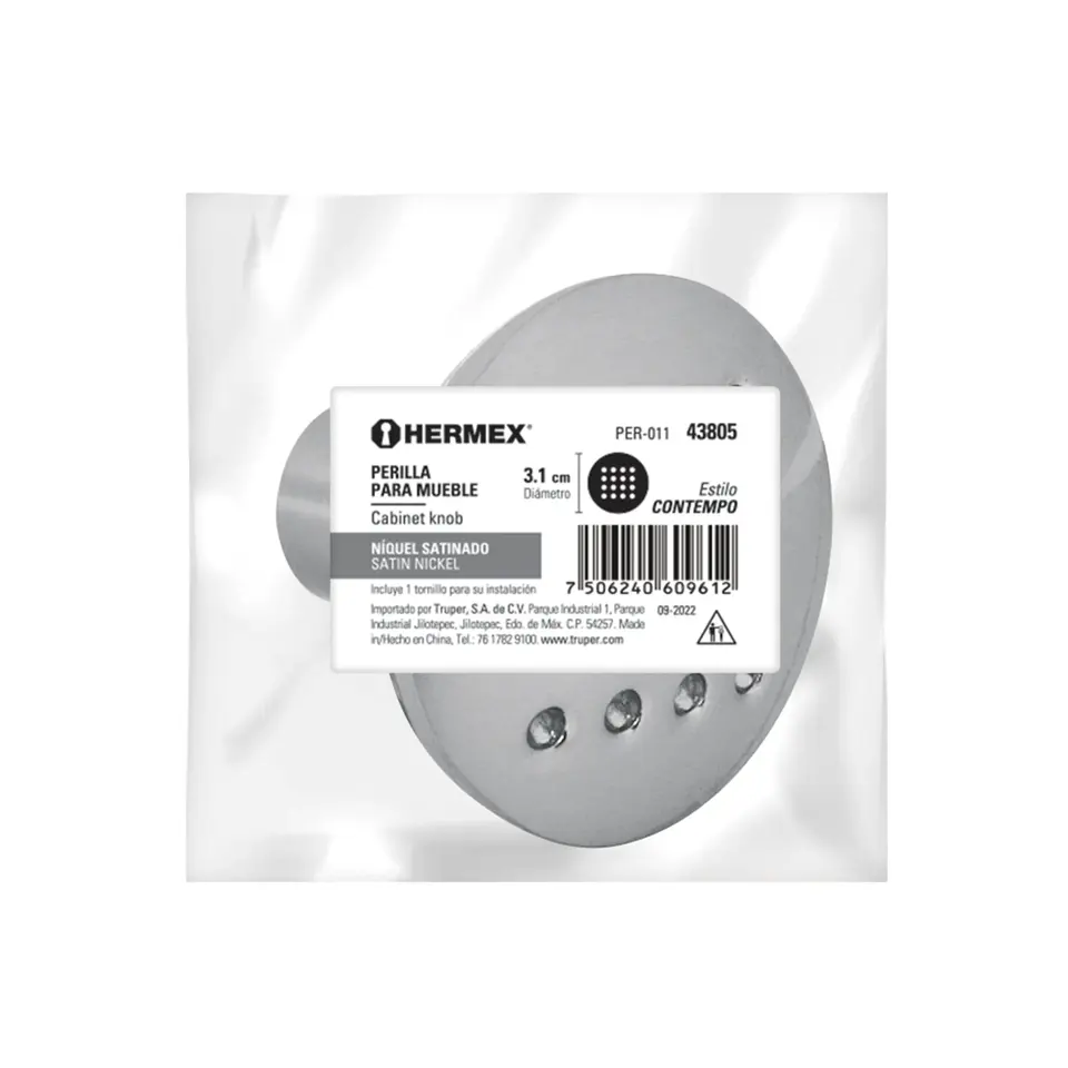 Master with 360 units 'Contempo' style metal knob, satin nickel, HERMEX