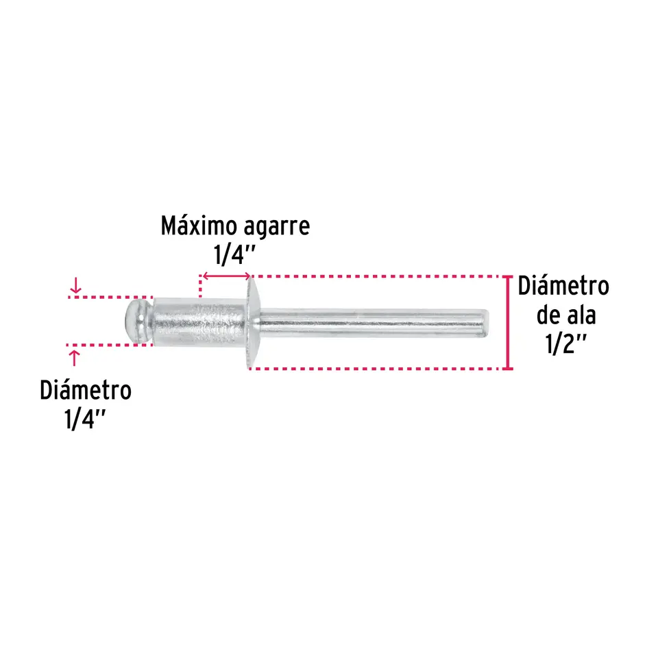 Master with 42 units Bag with 50 rivets of 1/4' x 1/4' aluminum, wing 1/2'