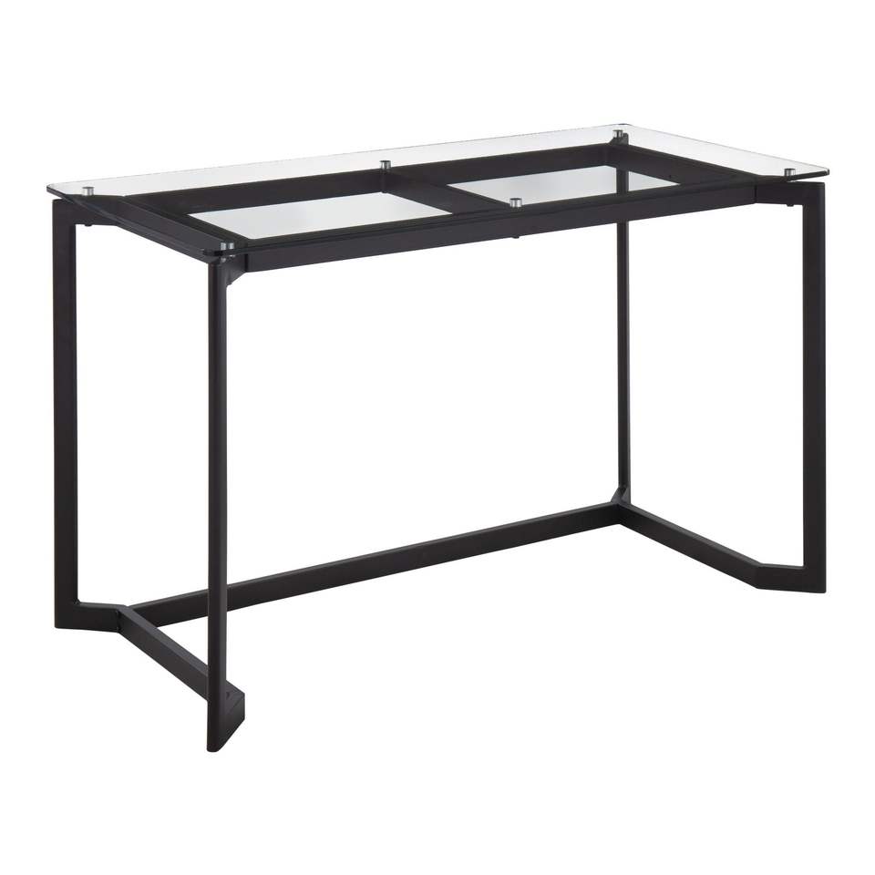 Scrivania da ufficio moderna in acciaio nero e vetro trasparente per Computer