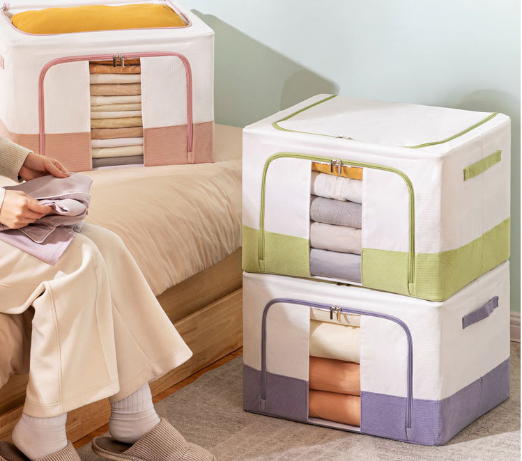 Matcha verde grande capacità dormitorio scatola portaoggetti in tessuto cialde griglie per abbigliamento trapunte giocattoli Anti-muffa e Anti-umidità